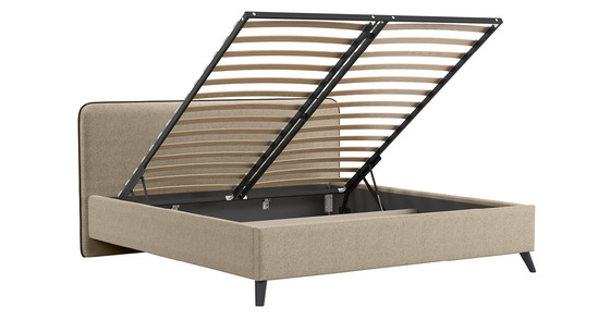 Кровать Миа 160 рогожка бежево-коричневый, кант желтовато-коричневый с ортопедическим основанием и подъемным механизмом