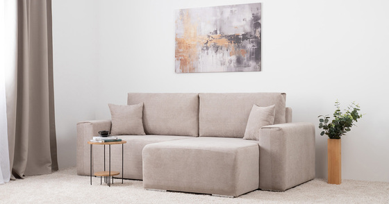 Диван-кровать угловой Тэдди 1502 композиция 3, букле Pique 006 бежевый, модульная система, сборка на любую сторону