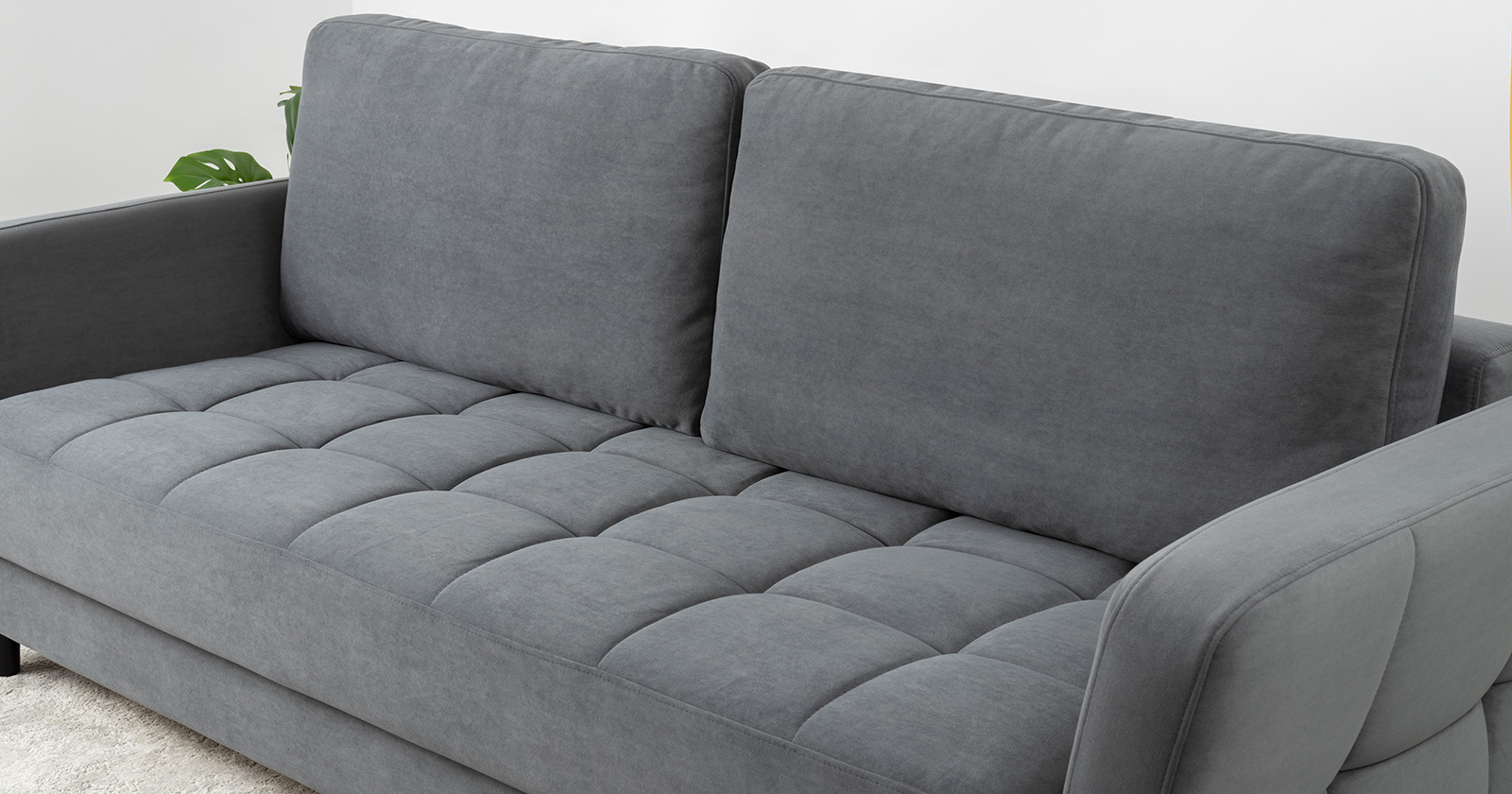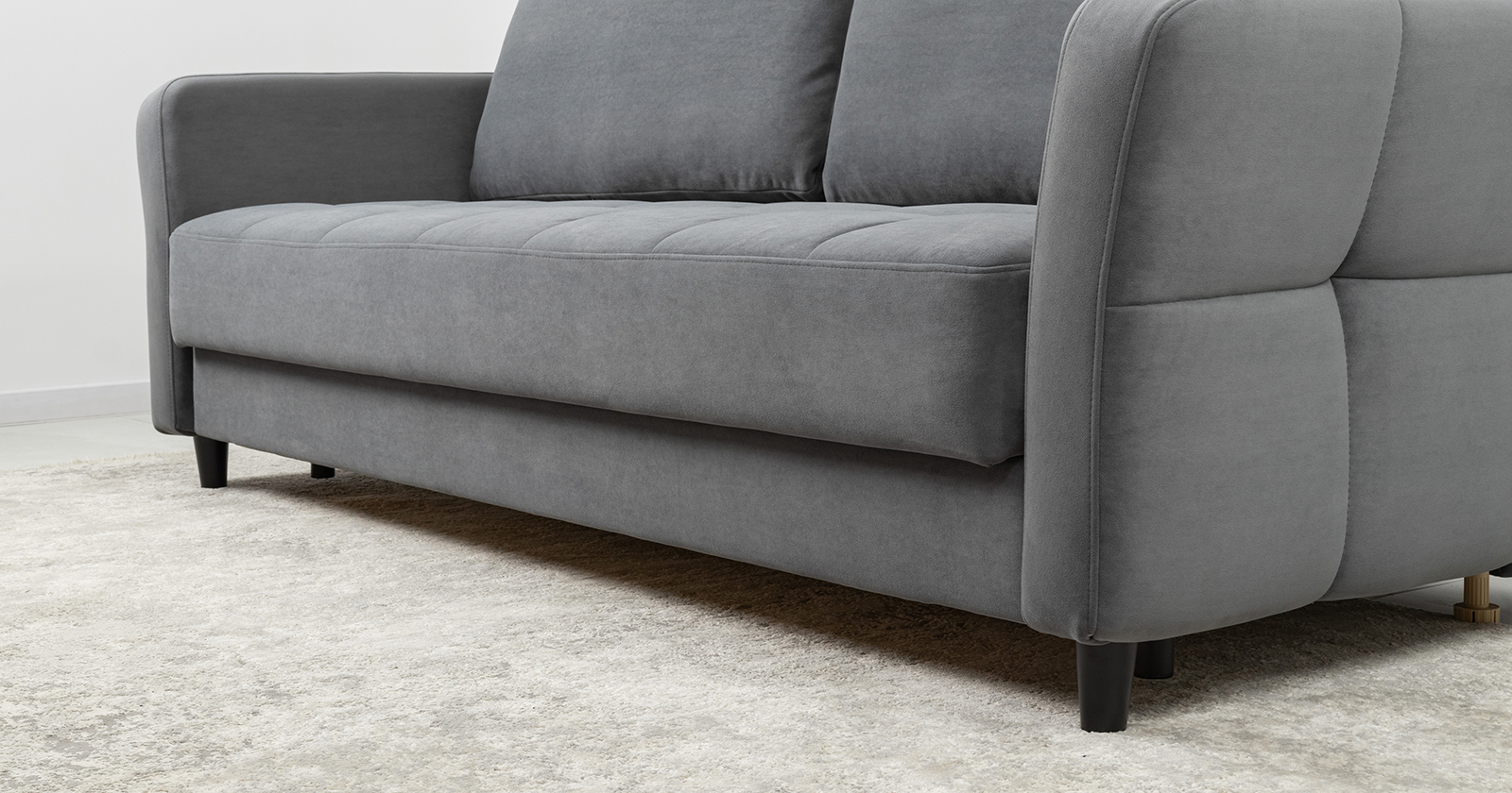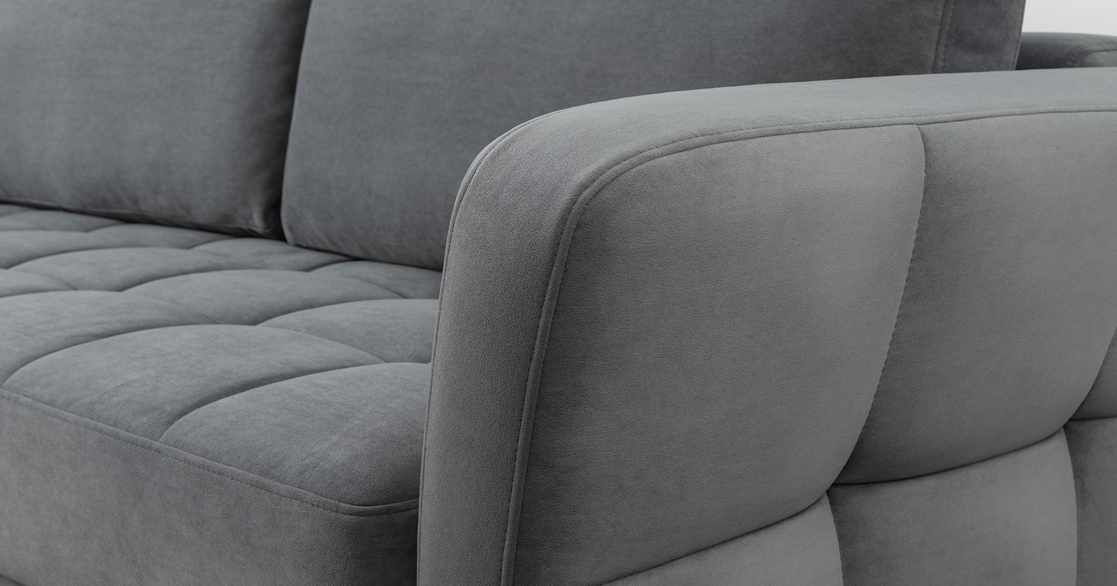 Ровная отстрочка по всему периметру сидения и стежка? создающая эффект пышности выделенных форм. Подлокотники прямые с изгибом в наружные стороны, с выраженной стежкой по лицевой стороне. Стежка на посадочной части дивана.