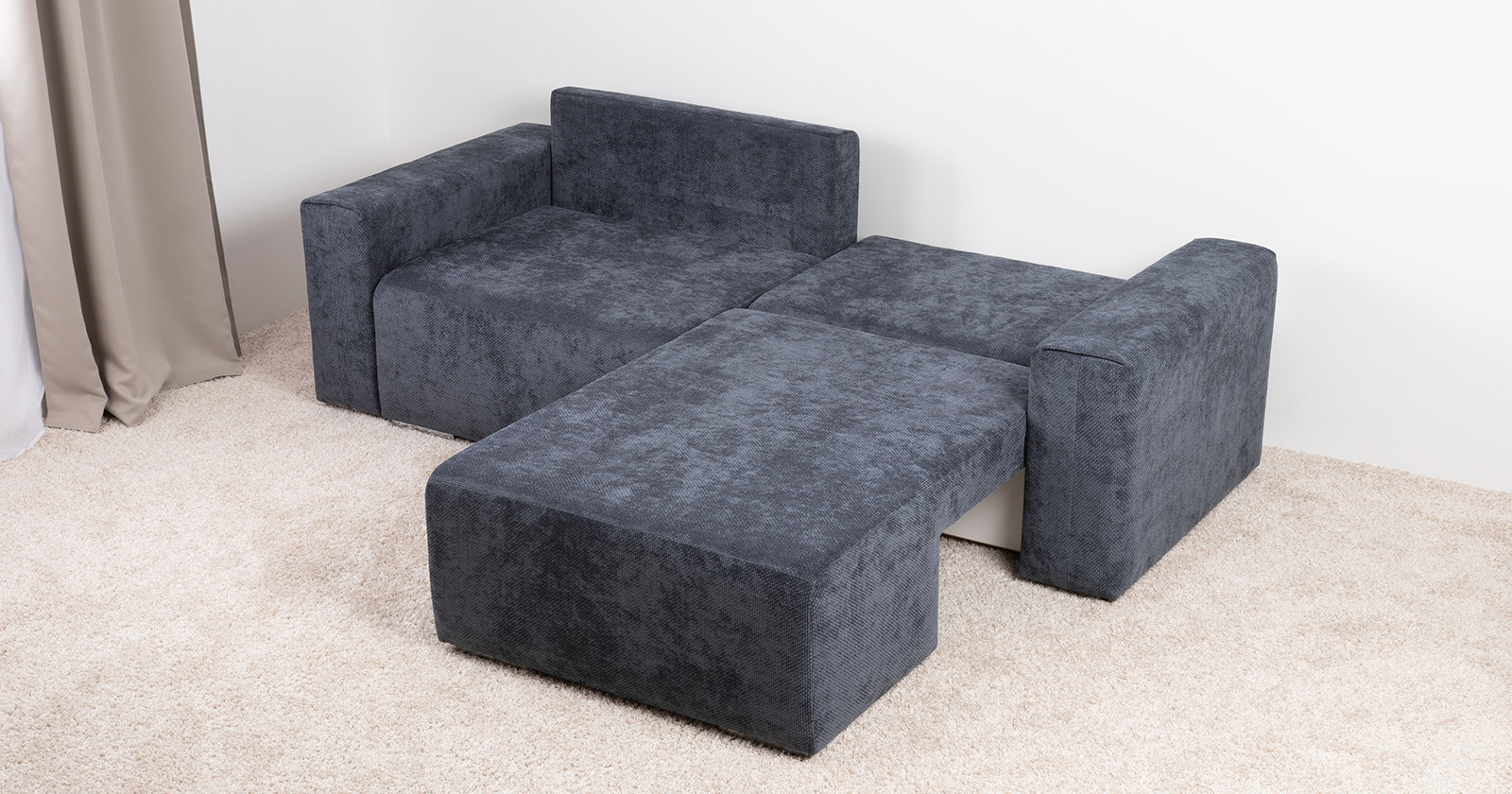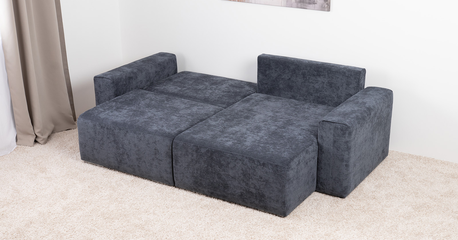Диван-кровать угловой Тэдди 1504 композиция 2, букле Pique 009 синий, модульная система, сборка на любую сторону