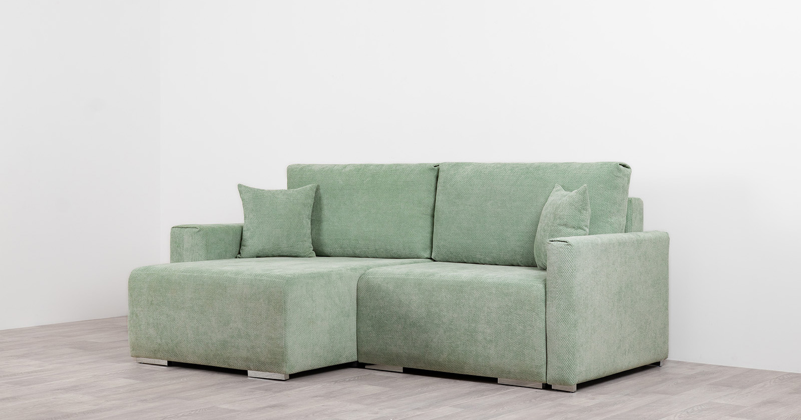 Диван-кровать угловой Оксфорд 715 композиция 1, шенилл STORM 9 мятный, модульная система, сборка на любую сторону