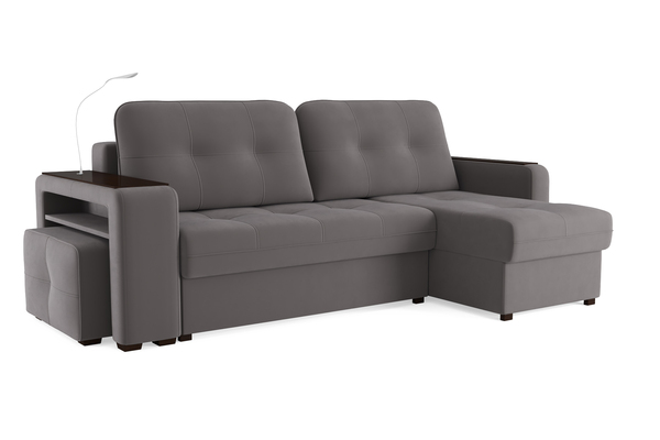 Баланс между эстетикой и функциональностью — основное требование к современной мебели. Мягкая мебель должна быть не просто красивой, но прежде всего удобной и функциональной. Особенно если речь идет о маленьких квартирах, где гостиная может быть одновременно и спальней, и кабинетом. С этой задачей прекрасно справится диван «SMART 4». Уникальный дизайн делает модель по-настоящему универсальной. Одна боковина оснащена карманом для хранения мелочей и гаджетов, другая боковина совмещает одновременно: рабочую поверхность, за счет широкой накладки, двойной usb - порт и портативную лампу точечного света, которая входит в комплект. Добавить контрастных деталей в интерьер поможет пуф, интегрированный в подлокотник. Этот вариант для современных людей, которые ценят комфорт и удобство отдыха.