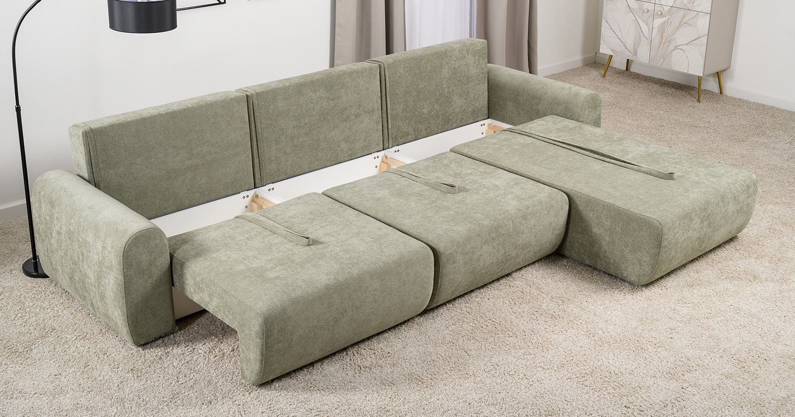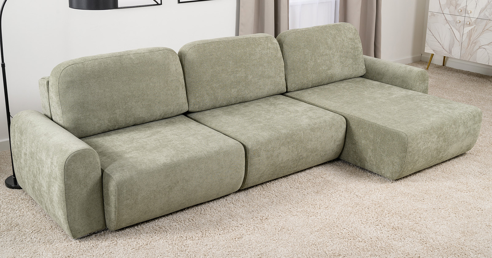 Диван-кровать угловой Тэдди 1503 композиция 3, букле Pique 007 оливковый, модульная система, сборка на любую сторону