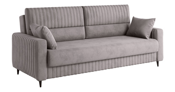 Комплект состоит из прямого и углового диванов, кресла для отдыха и пуфа.