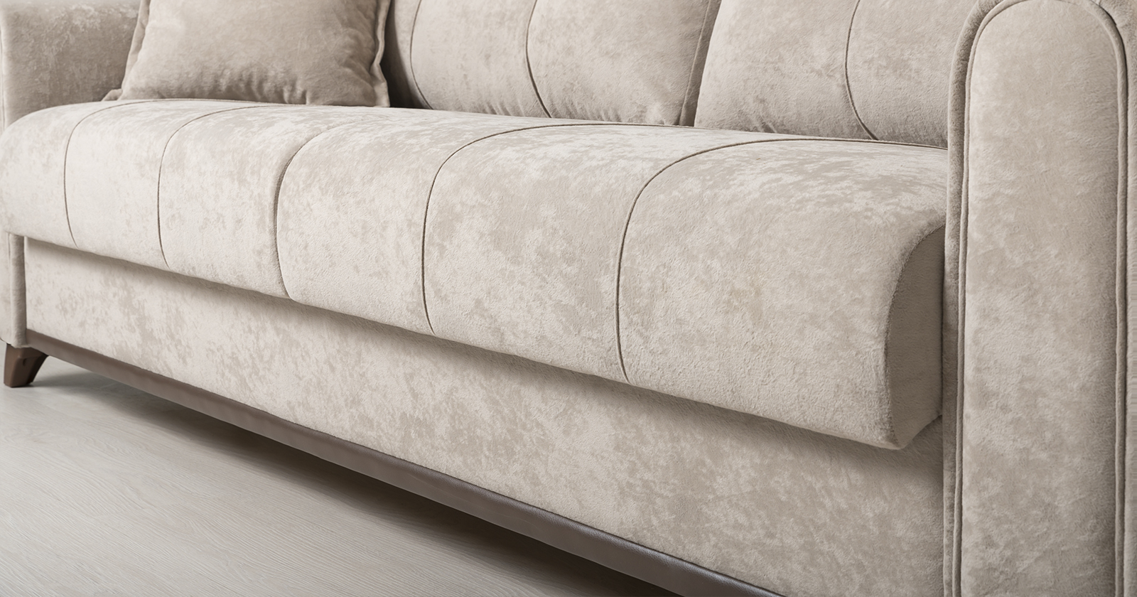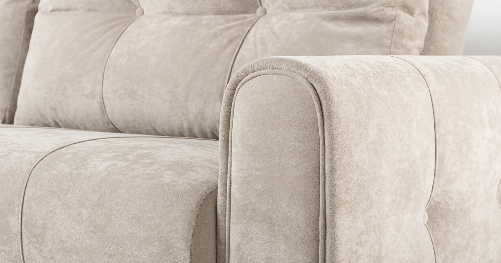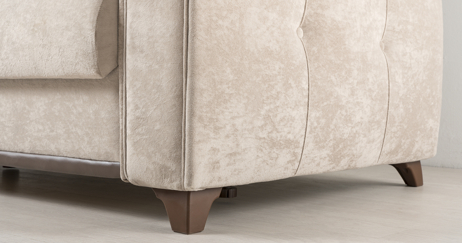 Выполнен в модном мягком велюре ROMANCE оригинальной фактуры. Ткань легко чистится, устойчива к зацепам, обладает повышенной износостойкостью. Благодаря особой технологии гладкого крашения Frozen Flower на поверхности ткани присутствует легкий краш–эффект, подчеркивающий невероятно мягкую фактуру ткани.