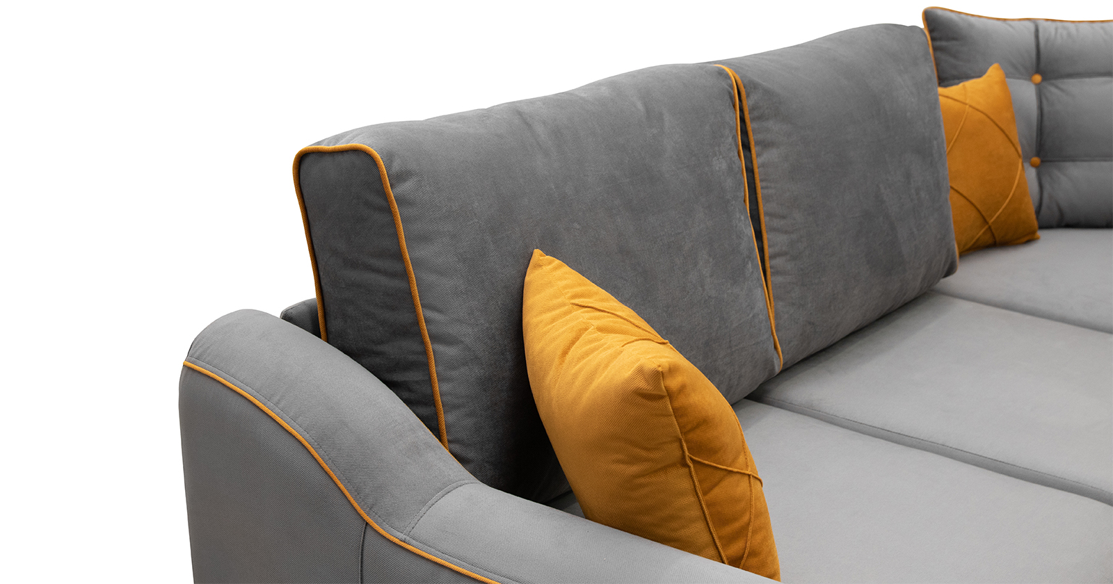 Декоративный кант, пуговицы, отстрочка, утяжки на подушке и подлокотниках