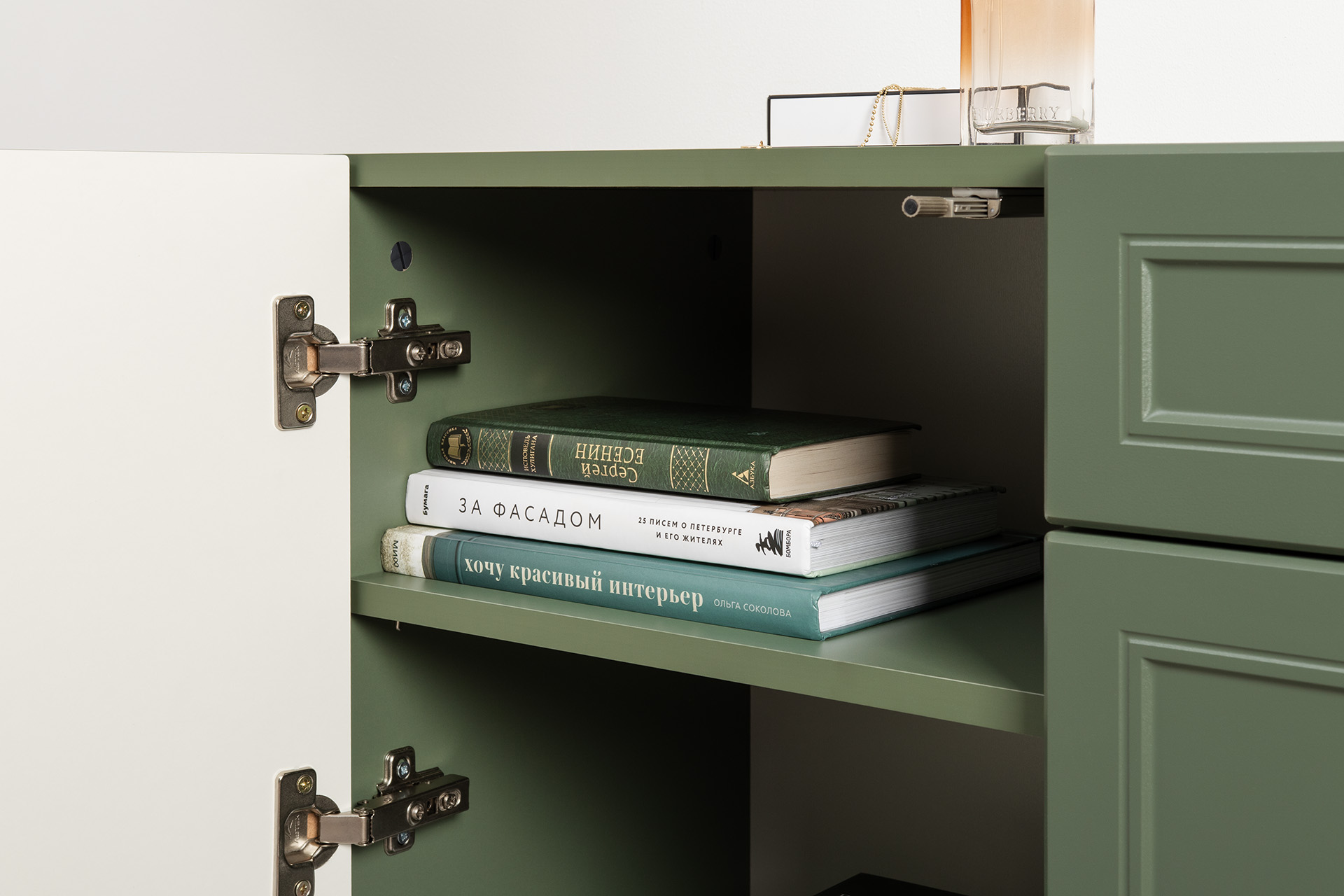Тумба Марион 16.167 дымчатый зеленый K521, олива шагрень AG 1050 ПВХ, белый PE шагрень