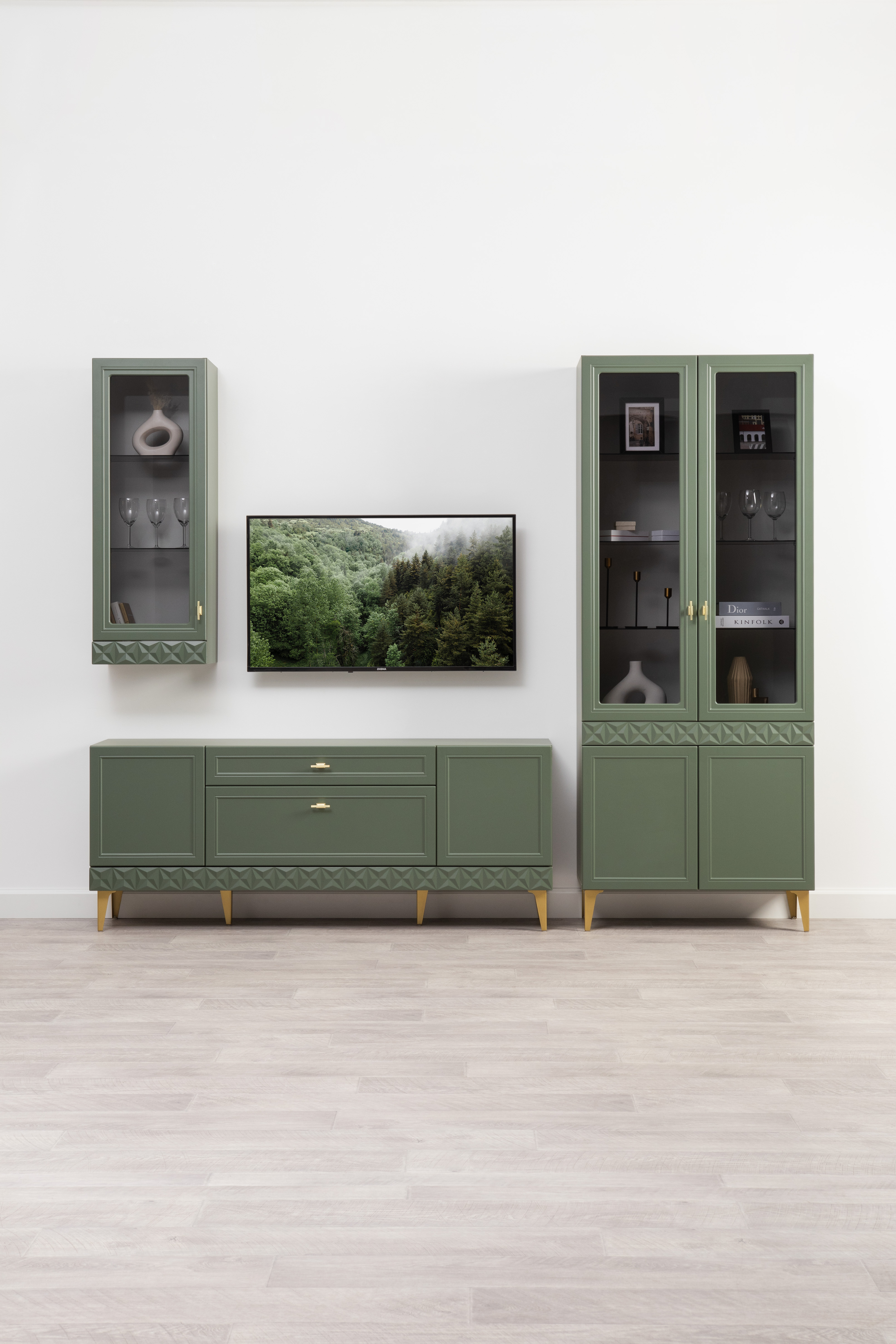 Гостиная Марион композиция 1 дымчатый зеленый K521, олива шагрень AG 1050 ПВХ, белый PE шагрень (собирается на любую сторону)