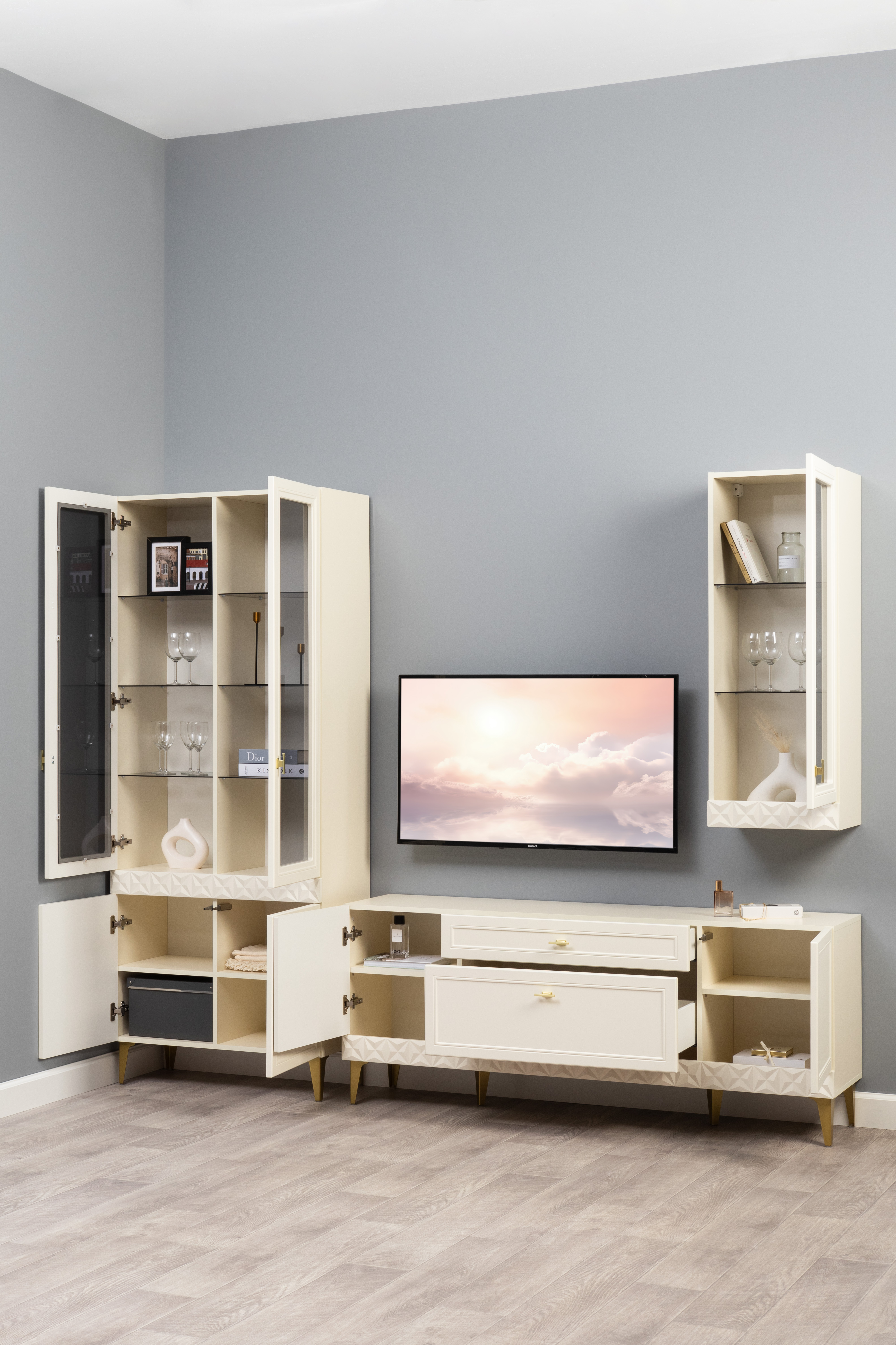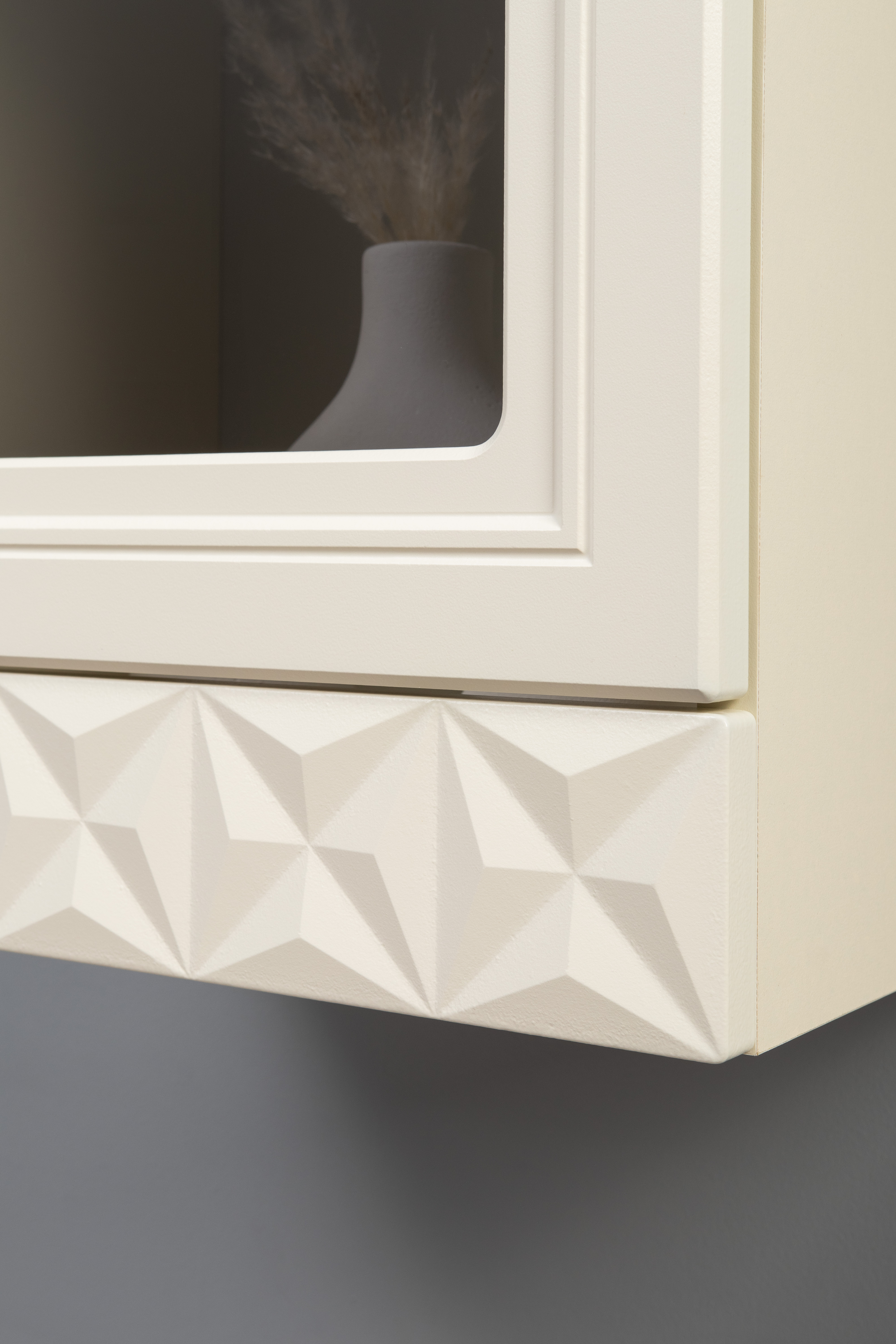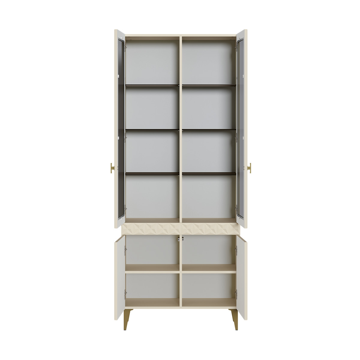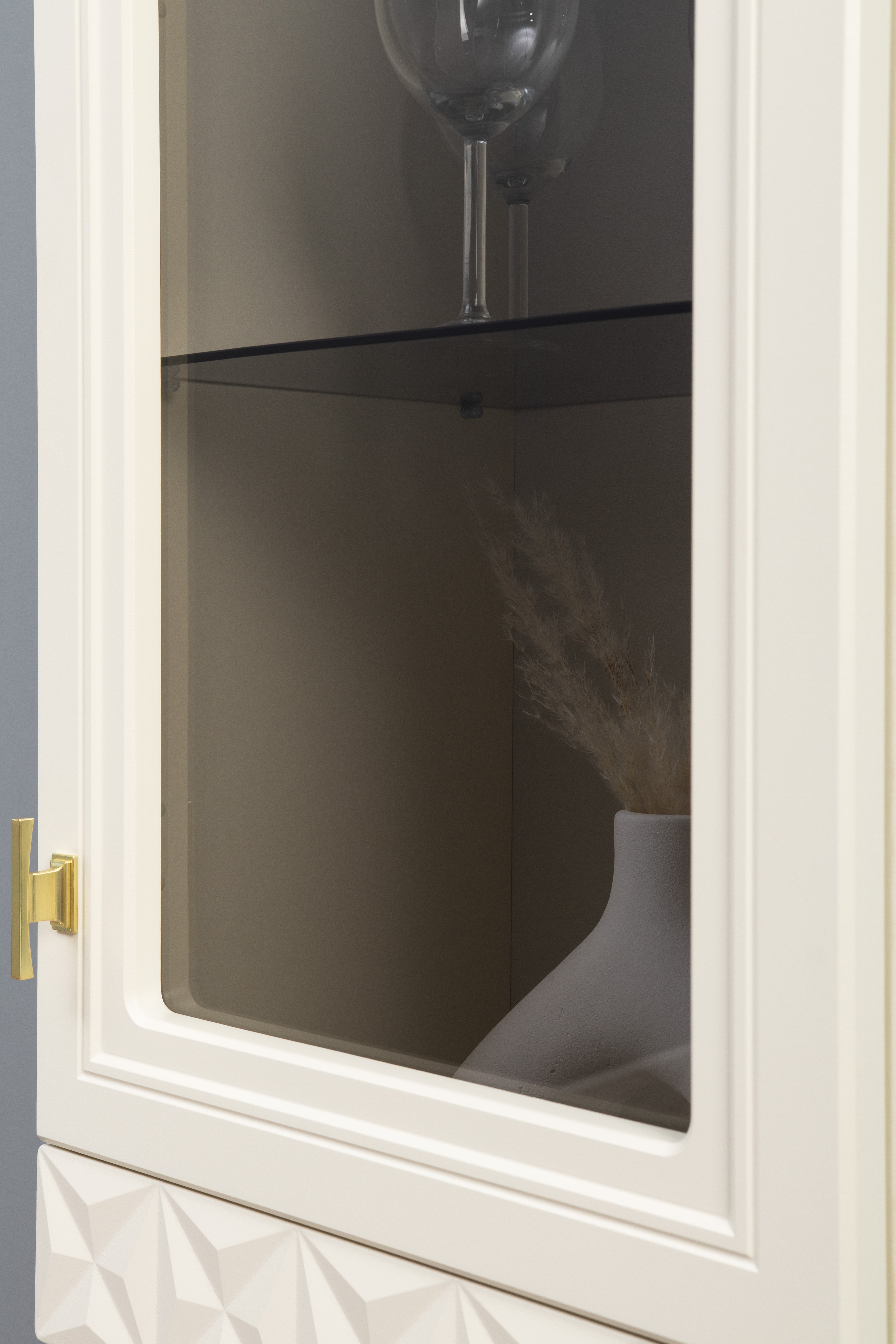 В коллекции представлены три типа витрин с тонированным закалённым стеклом, которые придают пространству лёгкость и свет. «Марион» — идеальное сочетание традиций и актуального дизайна в каждой детали.