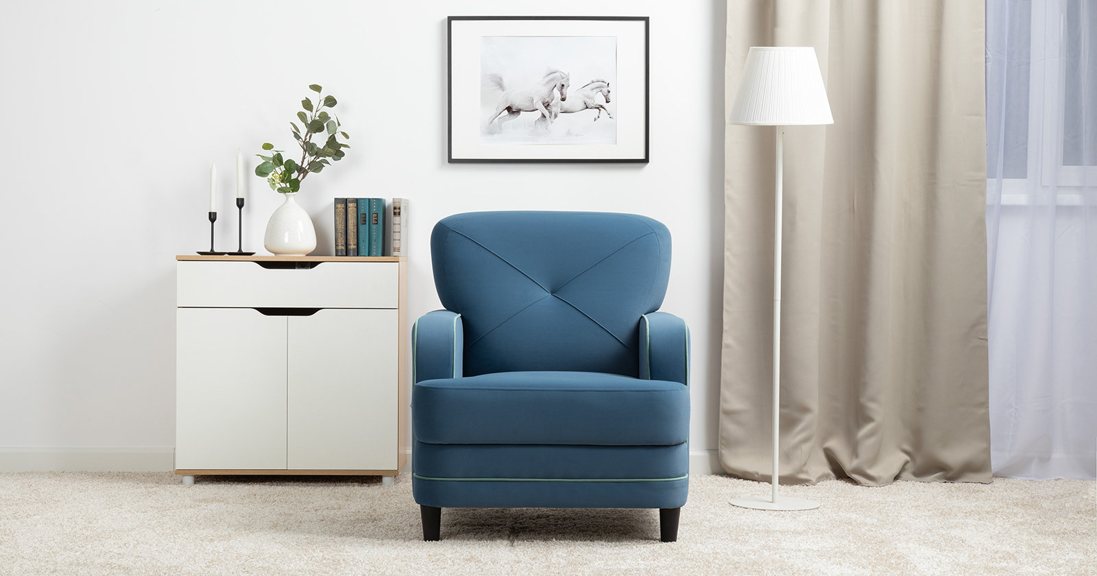 Кресло для отдыха Черри ТК 285 велюр Irida 07 синий, Эвита пистачио ментоловый