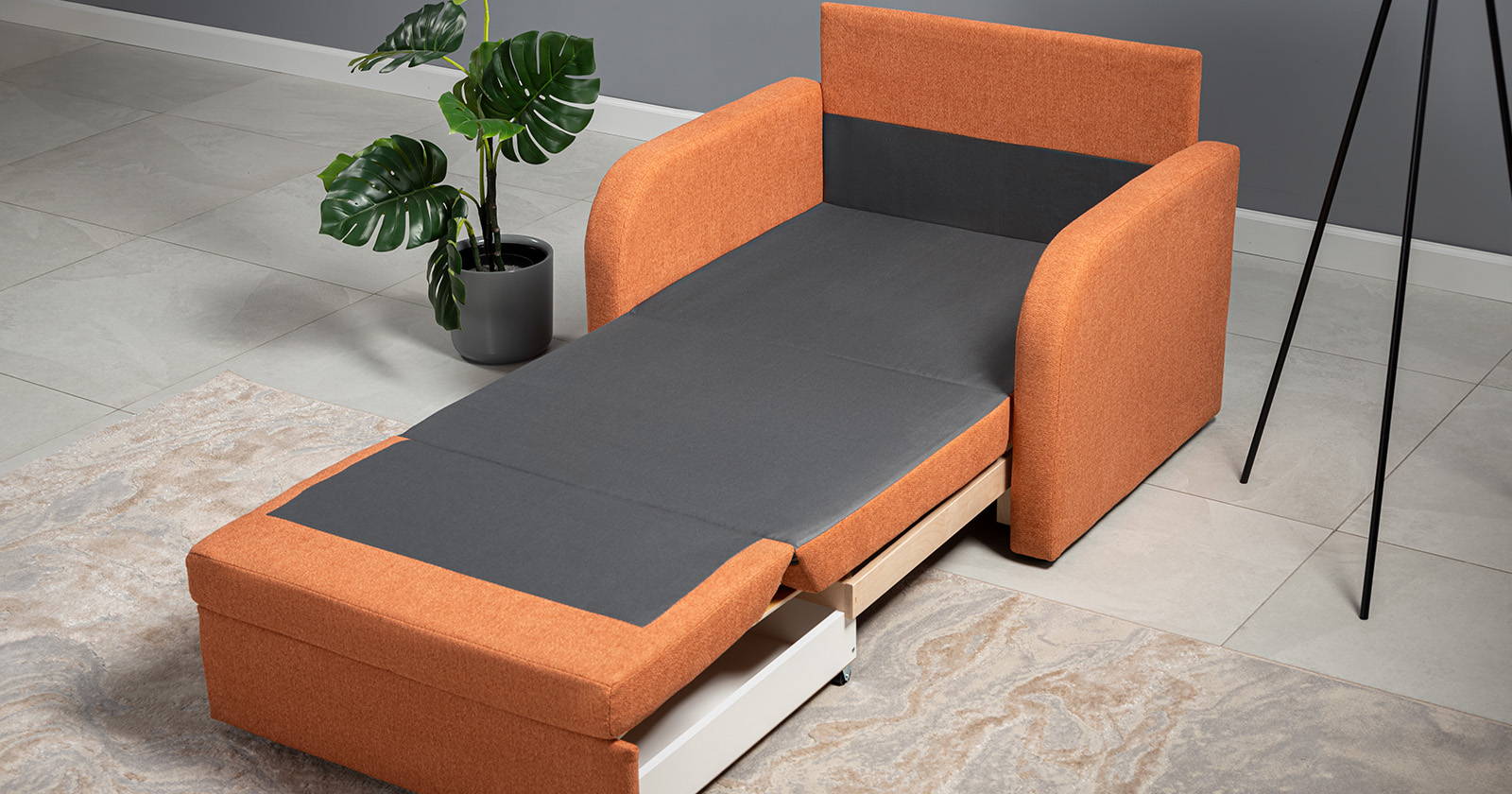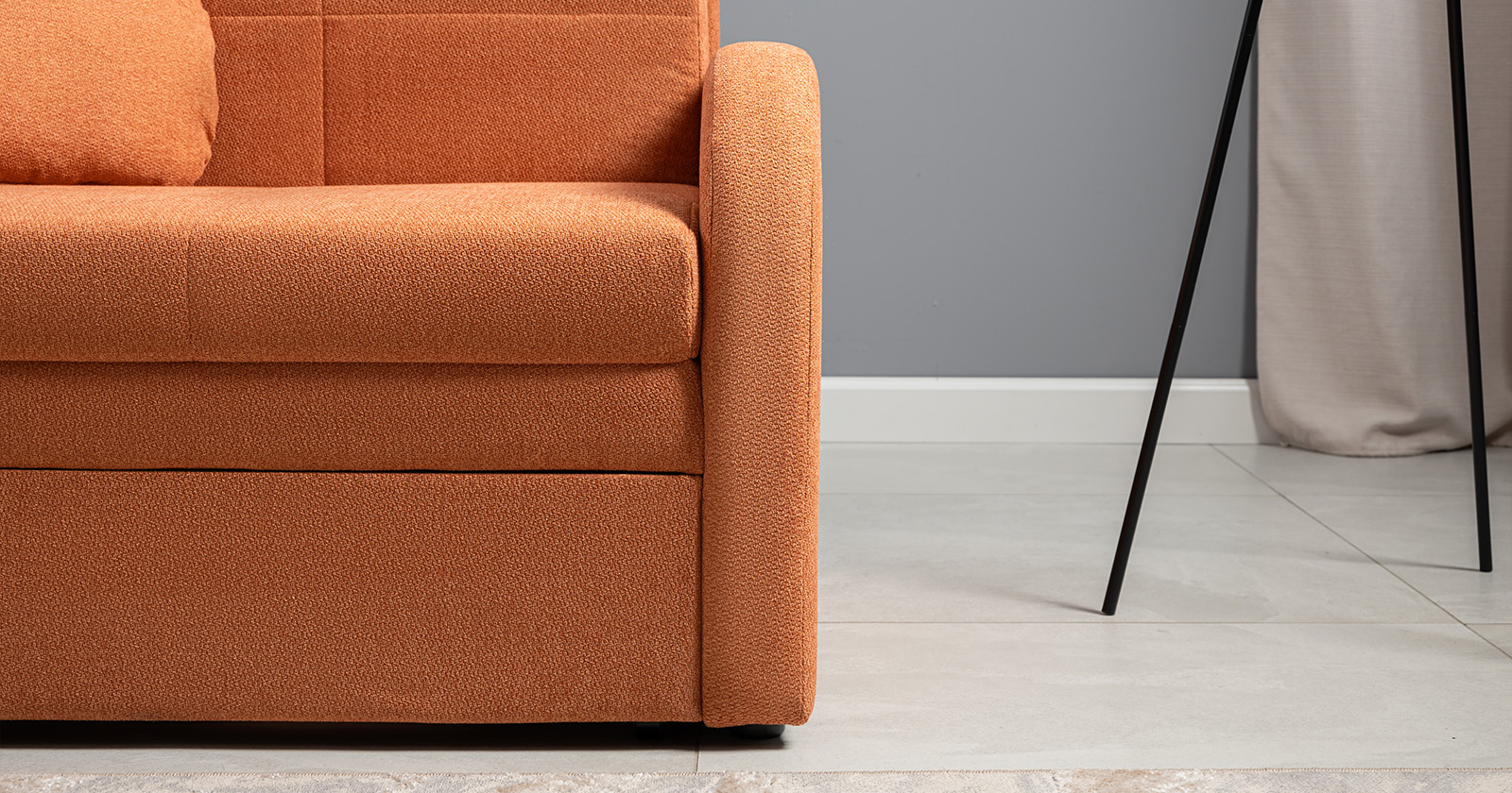 Коллекция выполнена в современном минималистичном стиле с мягкой обивкой из износостойкой ткани и декоративной стежкой, подчеркивающей геометрию форм. Механизм трансформации обеспечивает дополнительное спальное место, делая мебель не только эстетичной, но и максимально функциональной для небольших пространств.