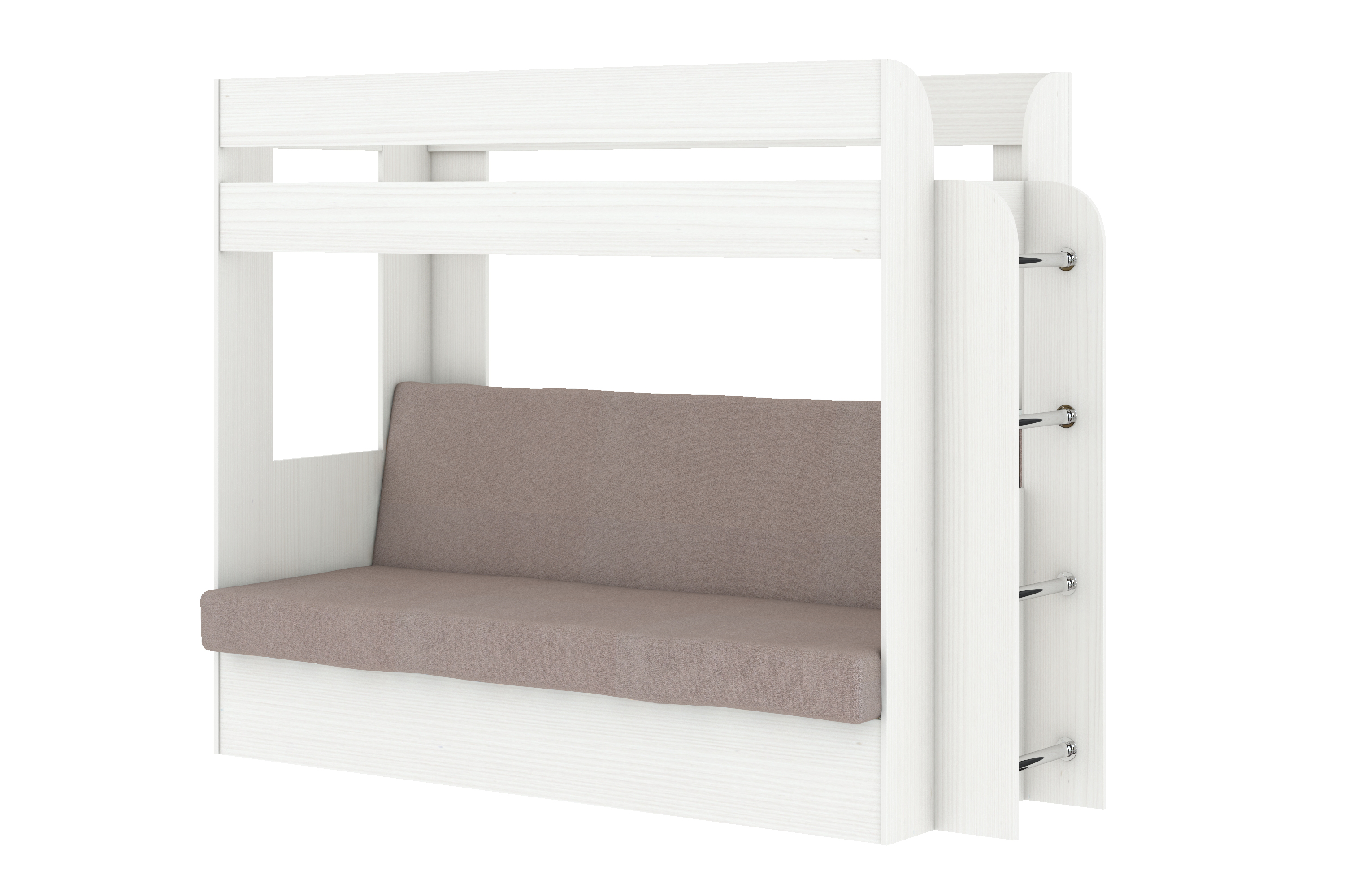 Кровать детская двухъярусная Карамель 75 бодега светлая, диван - велюр Вивальди 22 стоун коричневый (сборка на любую сторону) спальное место верх 80х190, низ 120х185