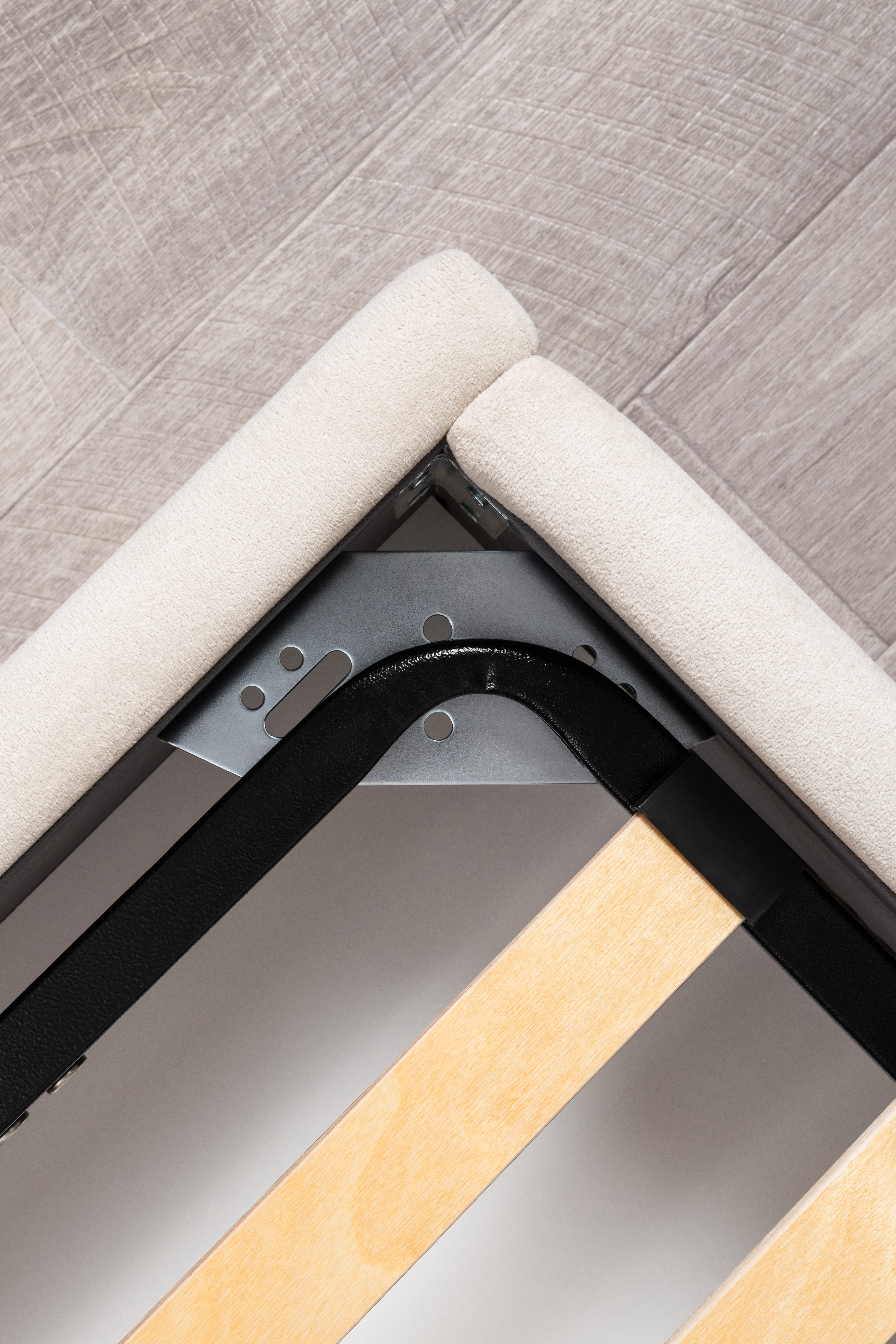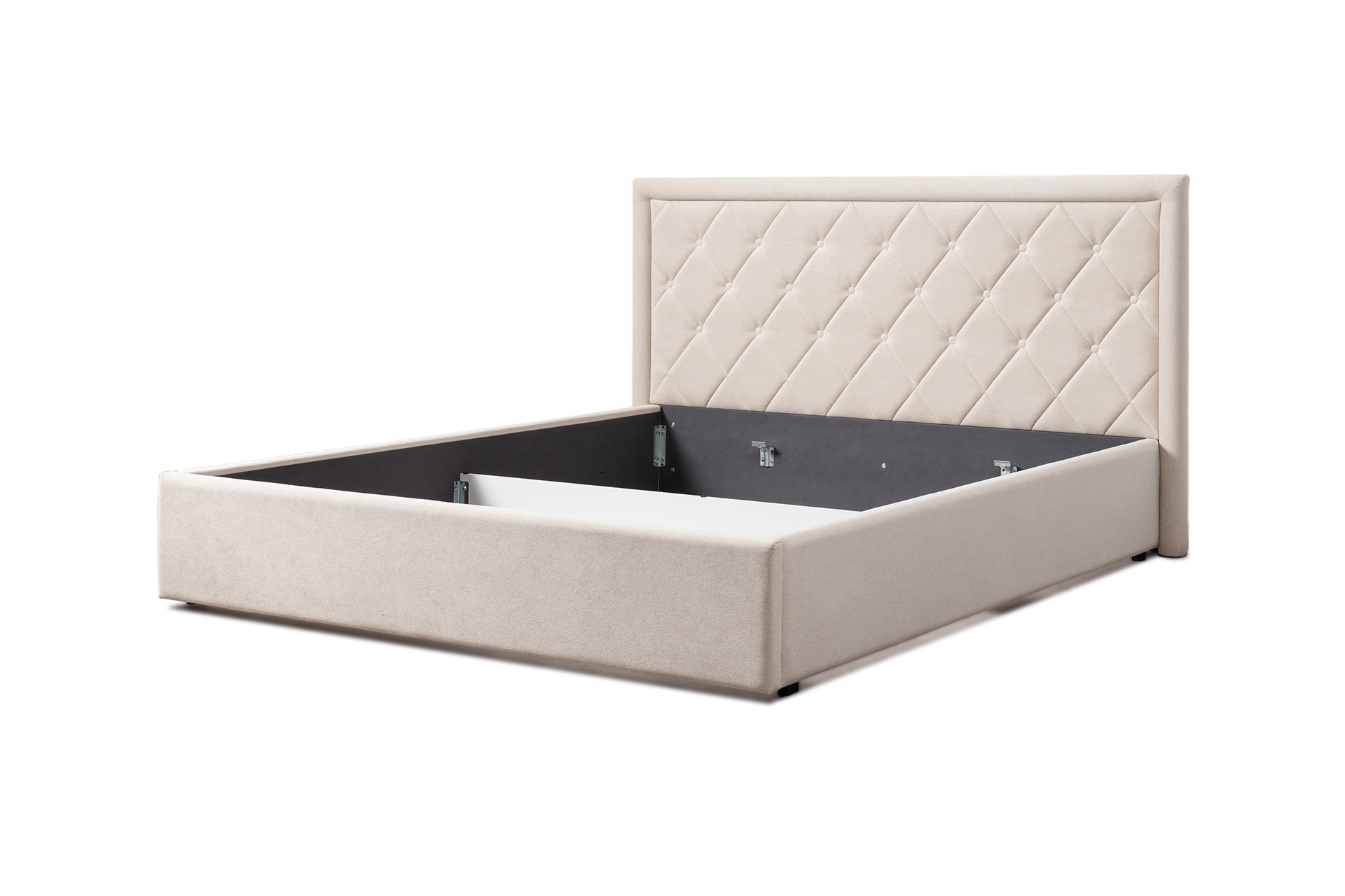 Основание кровати укомплектовано матрасодержателями. Жесткое кроватное дно из ЛДСП 16 мм на опорах 25 мм.