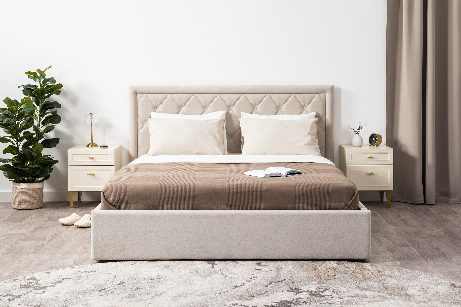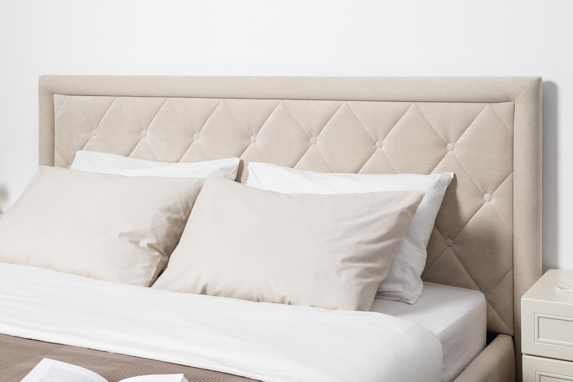 Кровать Марион — это идеальное сочетание стиля и комфорта. Элегантное изголовье оформлено стежкой в виде классической каретной стяжки, украшенной декоративными пуговицами, что придаёт изделию выразительный и утончённый вид. По всему периметру кровати проходит аккуратный валик, подчеркивающий геометрию и завершённость формы.