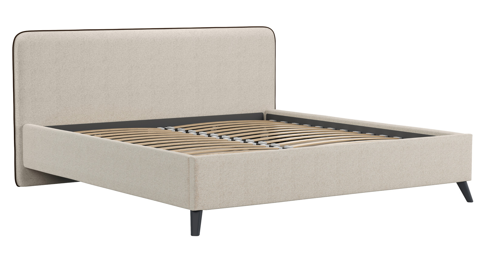 Cкругленный торец изголовья оформлен контрастным кантом.