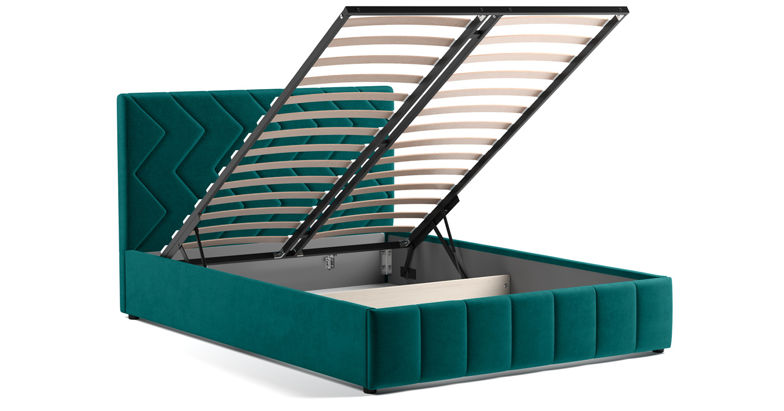 Кровать Милана 140 велюр сине-зеленый с ортопедическим основанием и подъемным механизмом