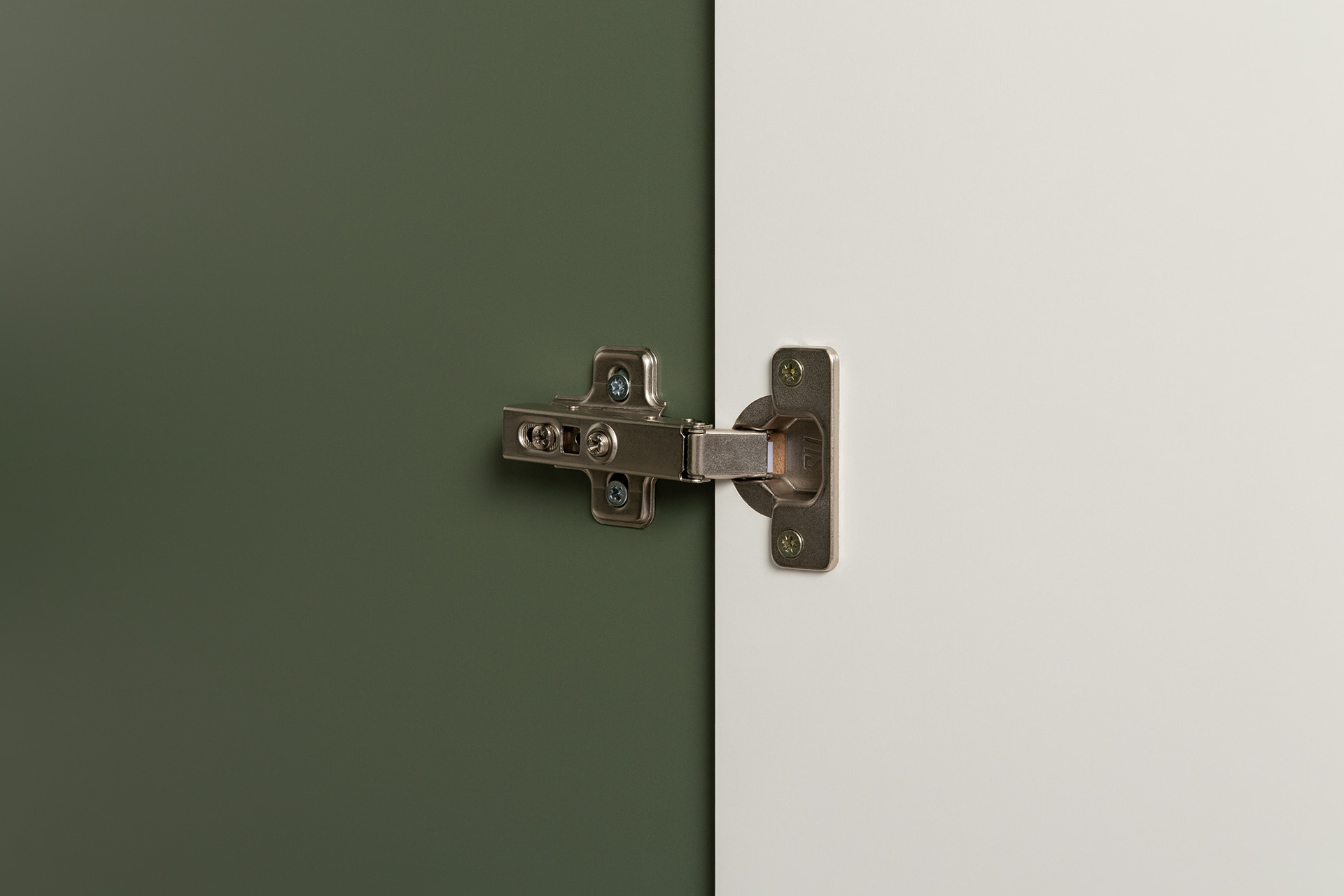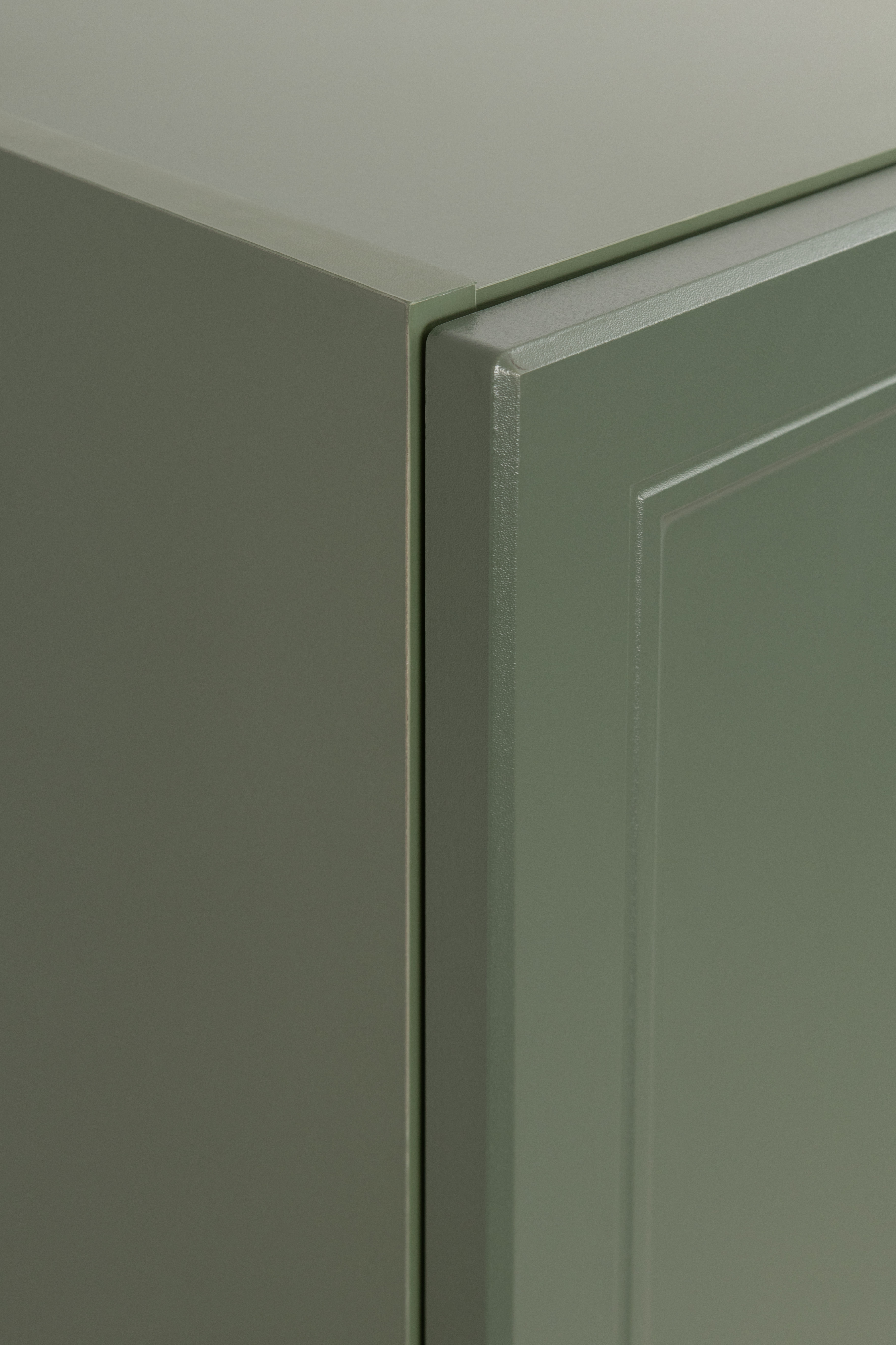 Изящные линии, глубокая фрезеровка фасадов из МДФ и благородные оттенки. Утончённая «Слоновая кость» и изысканная «Олива Шагрень» с глубоким зелёным тоном — создают атмосферу уюта, тепла и благородства. Металлические ручки и опоры золотого цвета придают мебели утончённый блеск, а петли и направляющие с доводчиками обеспечивают плавное и бесшумное закрытие фасадов.