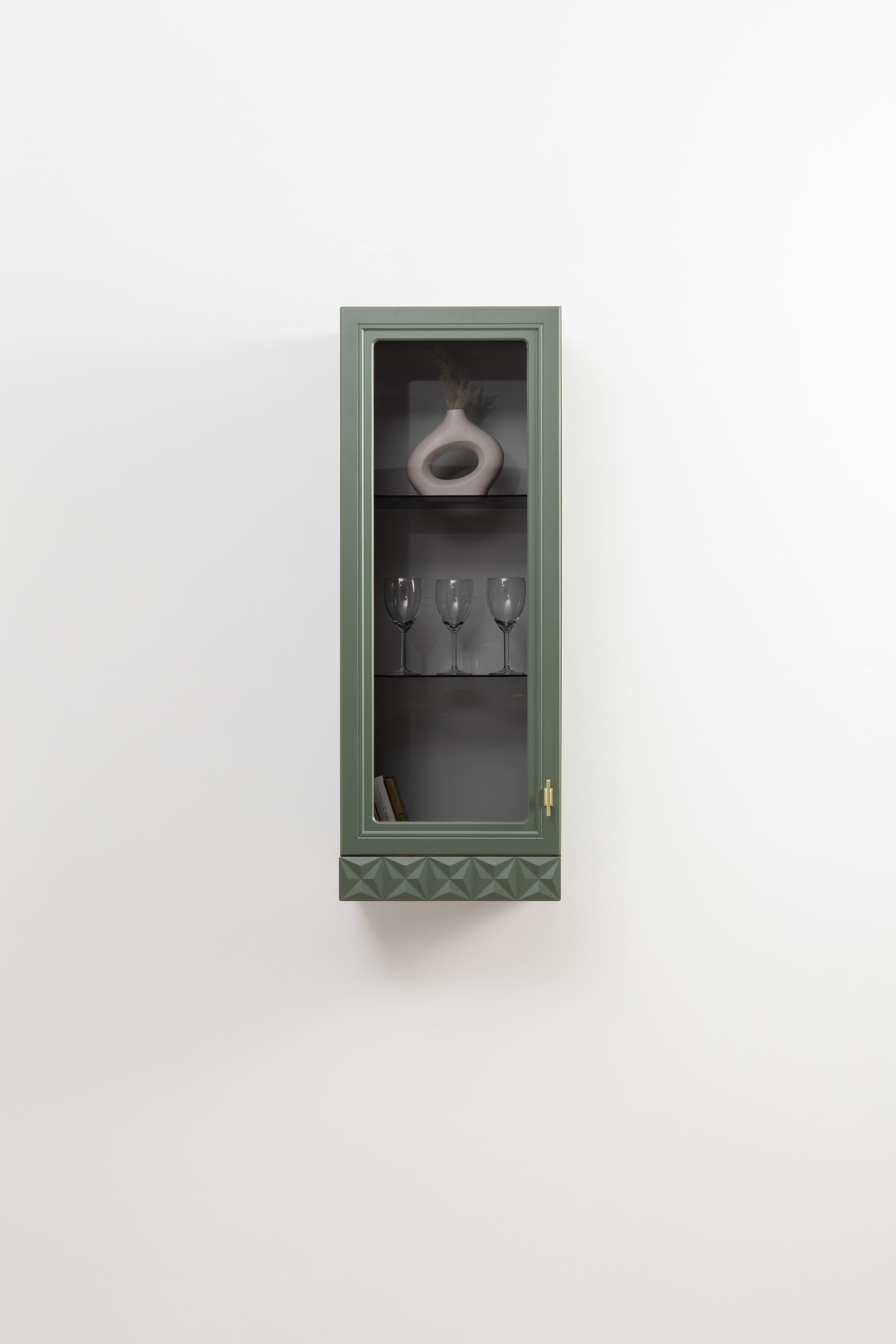 Шкаф навесной Марион 16.334 дымчатый зеленый K521, олива шагрень AG 1050 ПВХ (собирается на любую сторону)