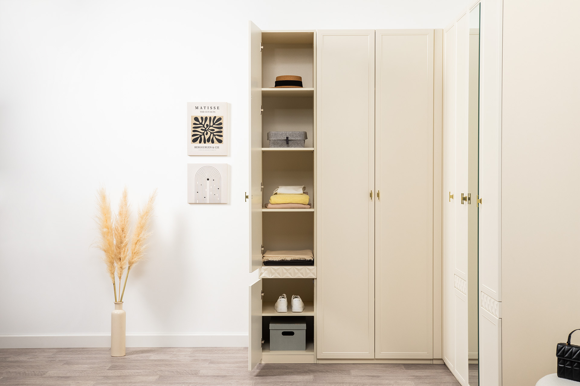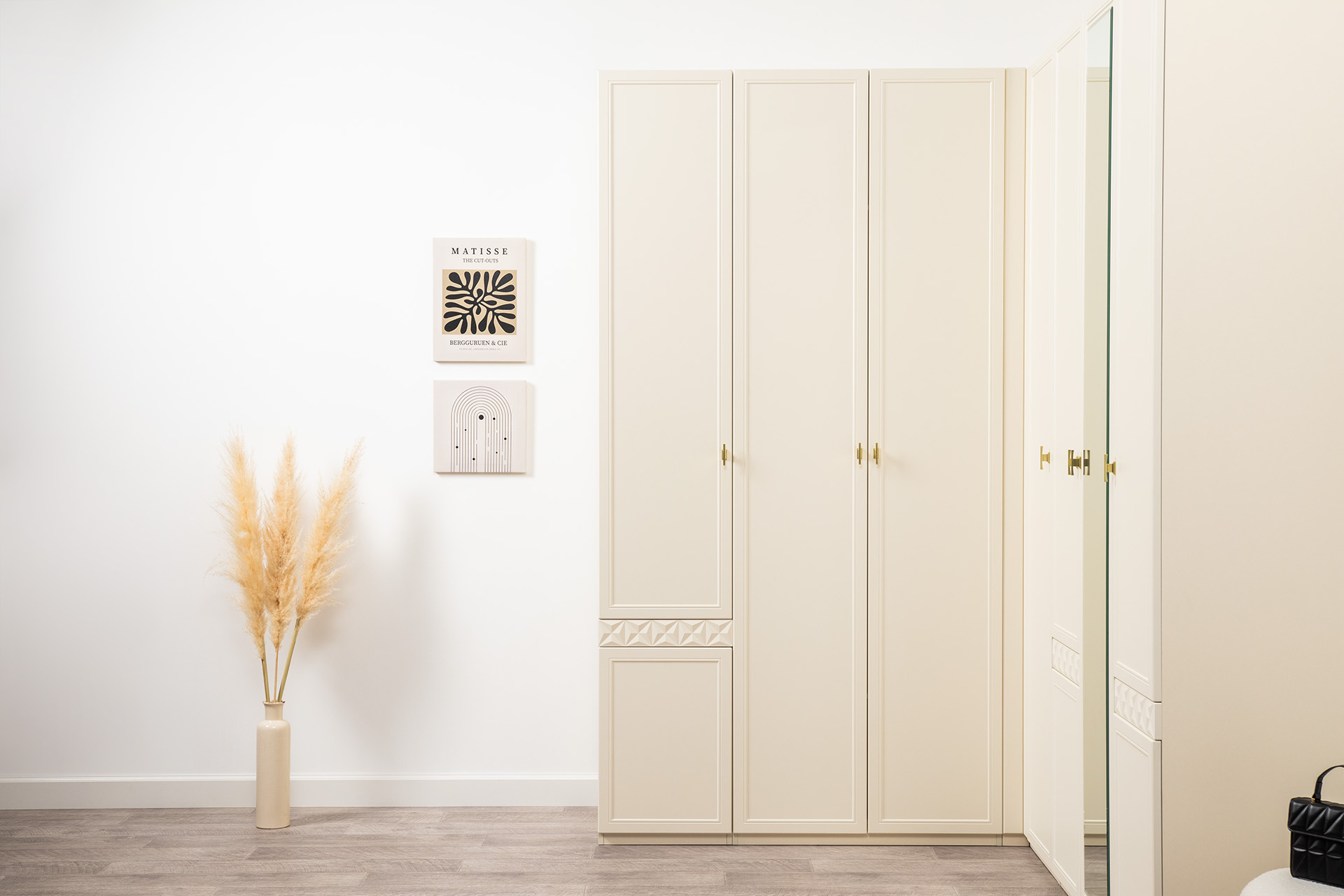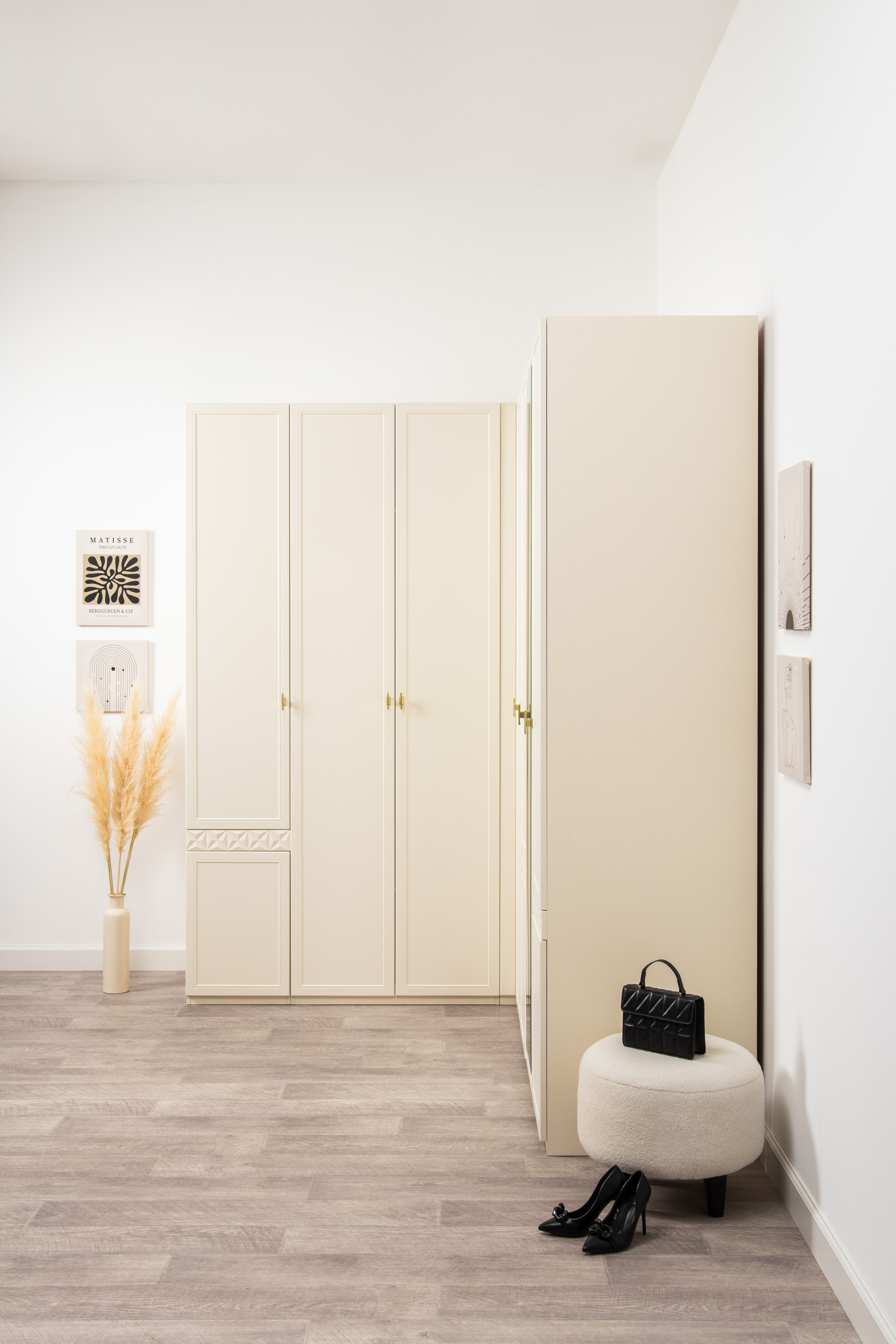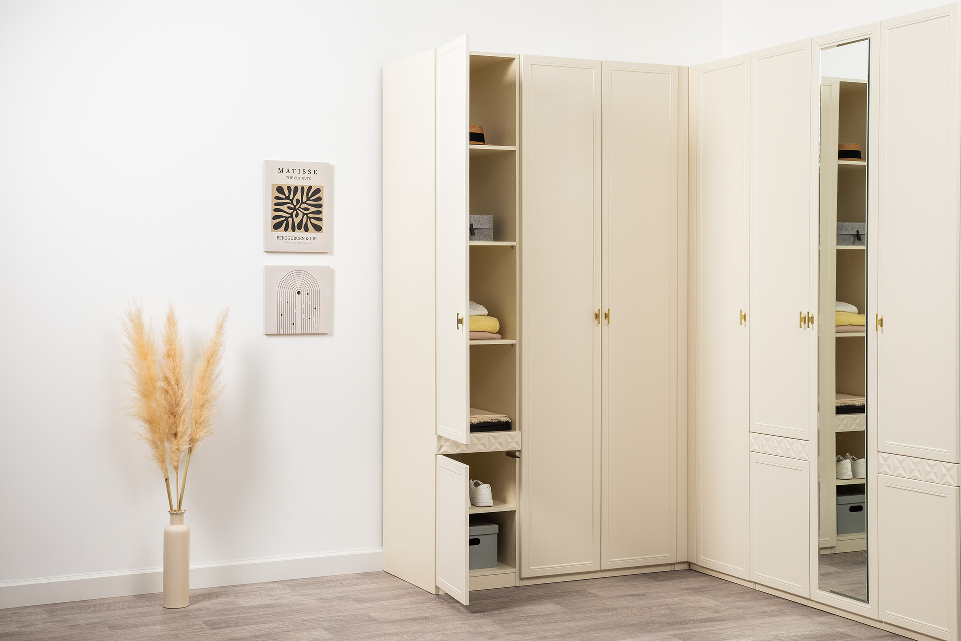 Шкаф-пенал Марион 16.340.01 слоновая кость С341 PE, слоновая кость 6898 ПВХ (собирается на любую сторону)