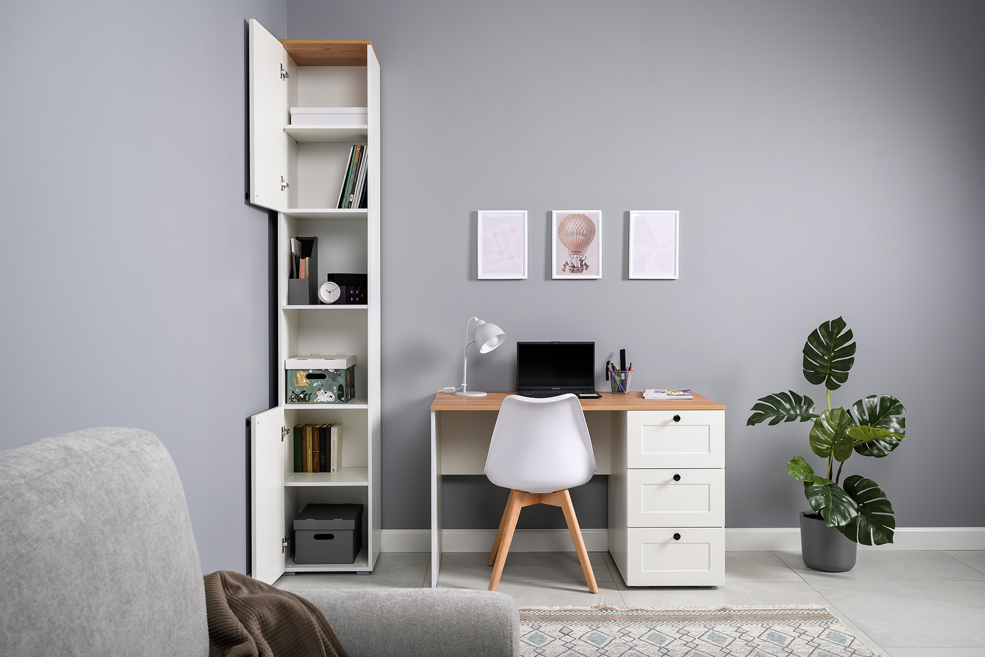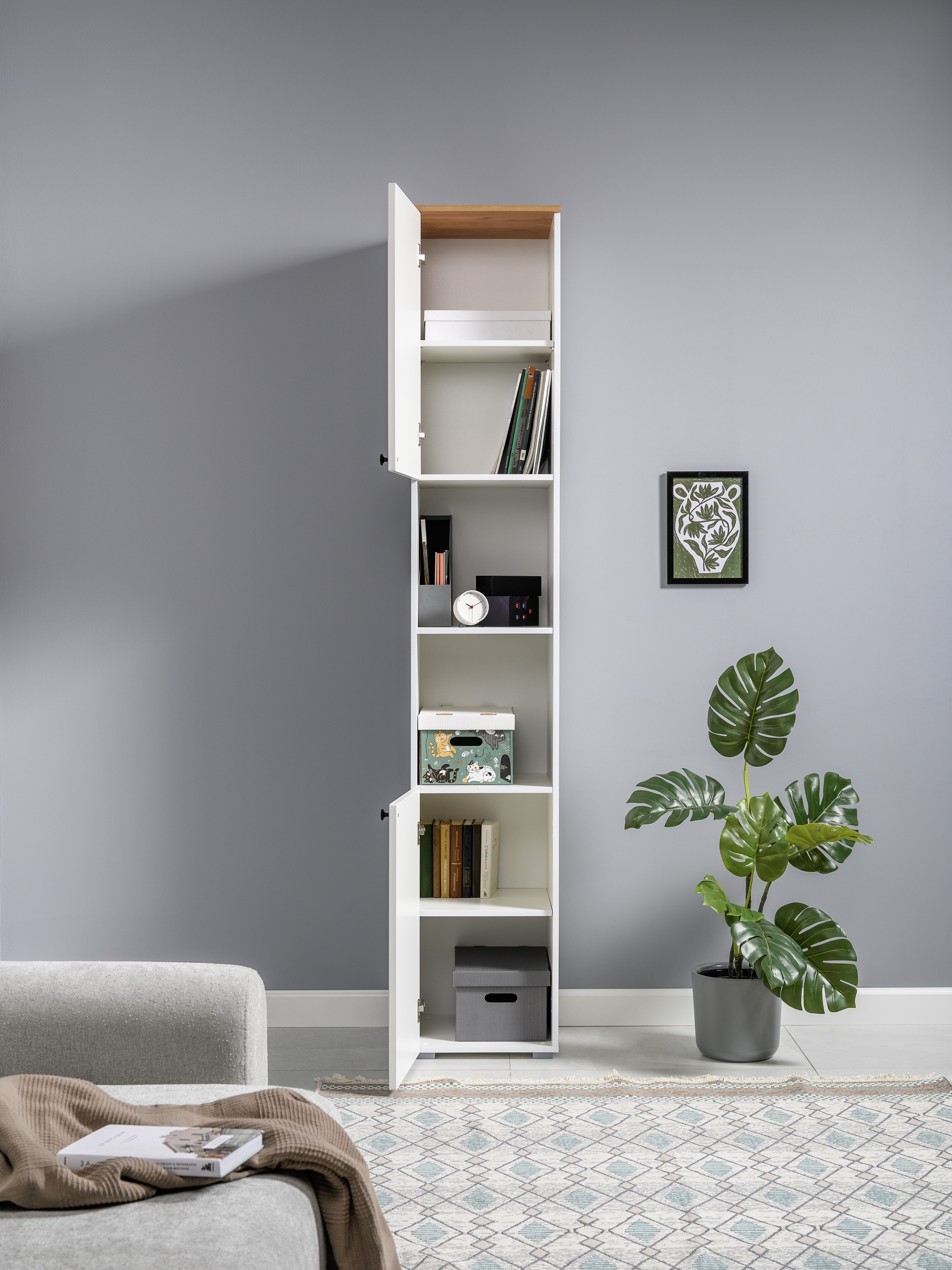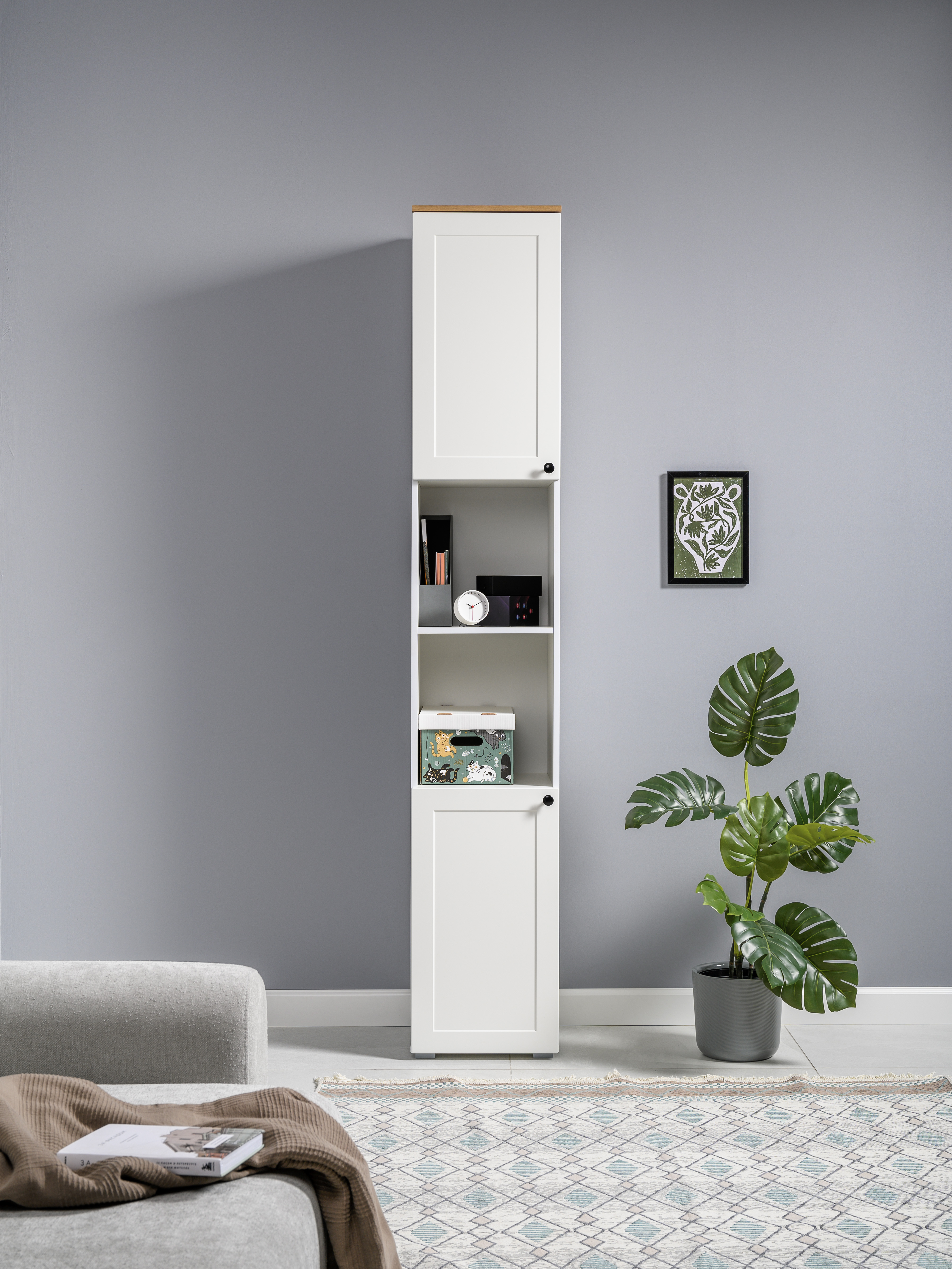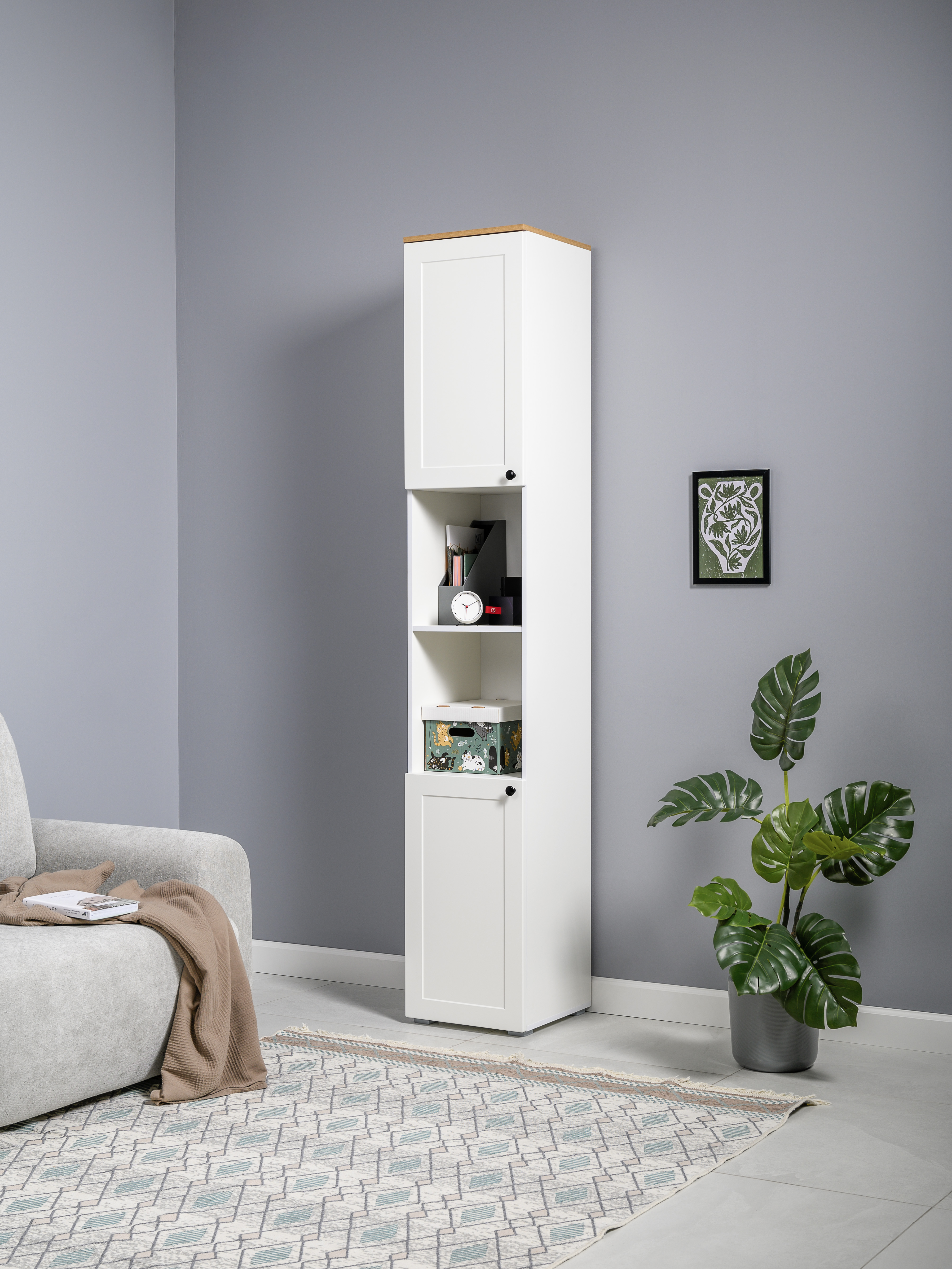 Шкаф-пенал Остин 13.225 белый PE шагрень, дуб вотан, белый PE шагрень ПВХ