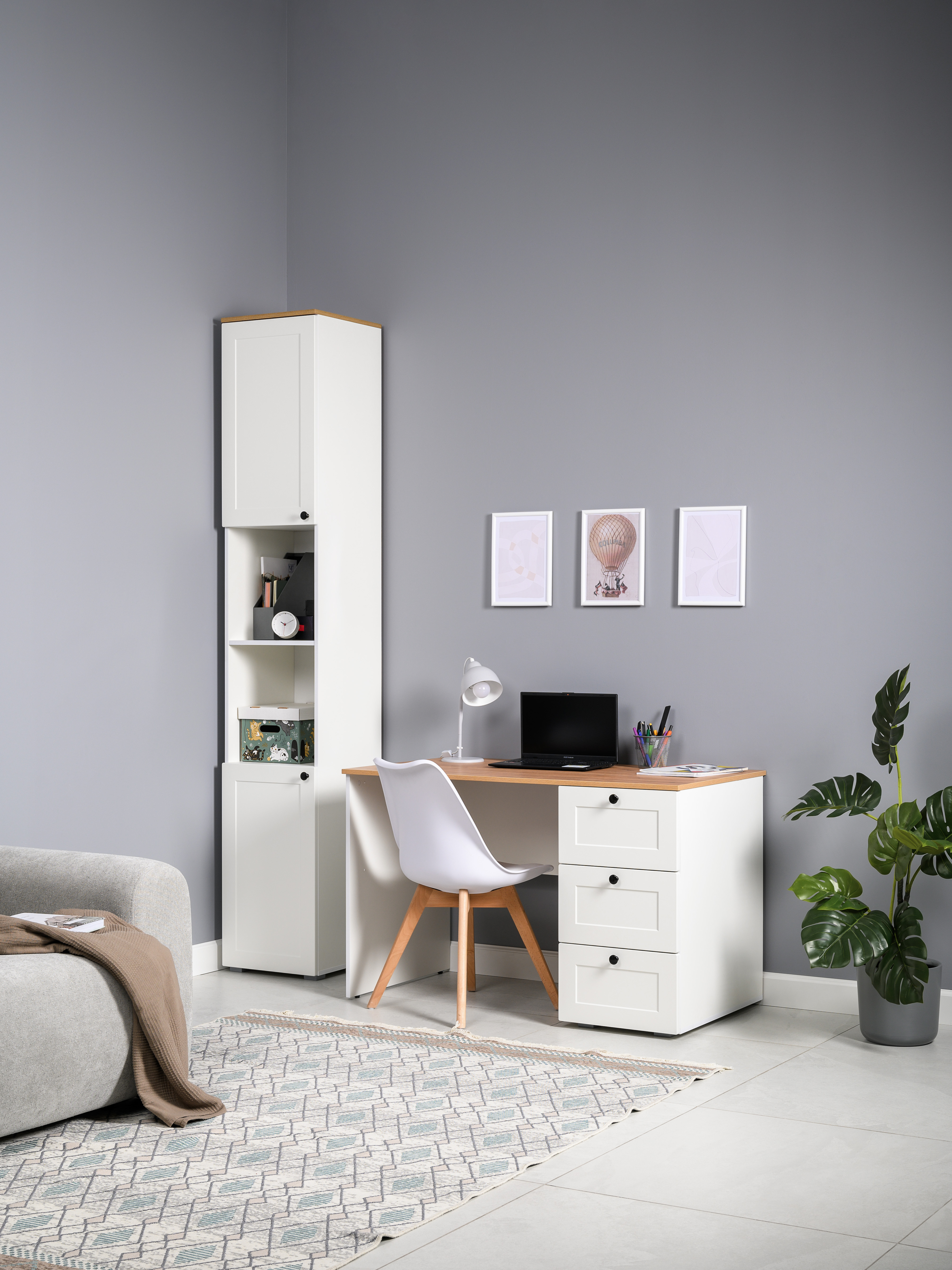 Стол письменный Остин 12.159 белый PE шагрень, дуб золотой CRAFT, белая шагрень 4101 ПВХ, сборка на любую сторону