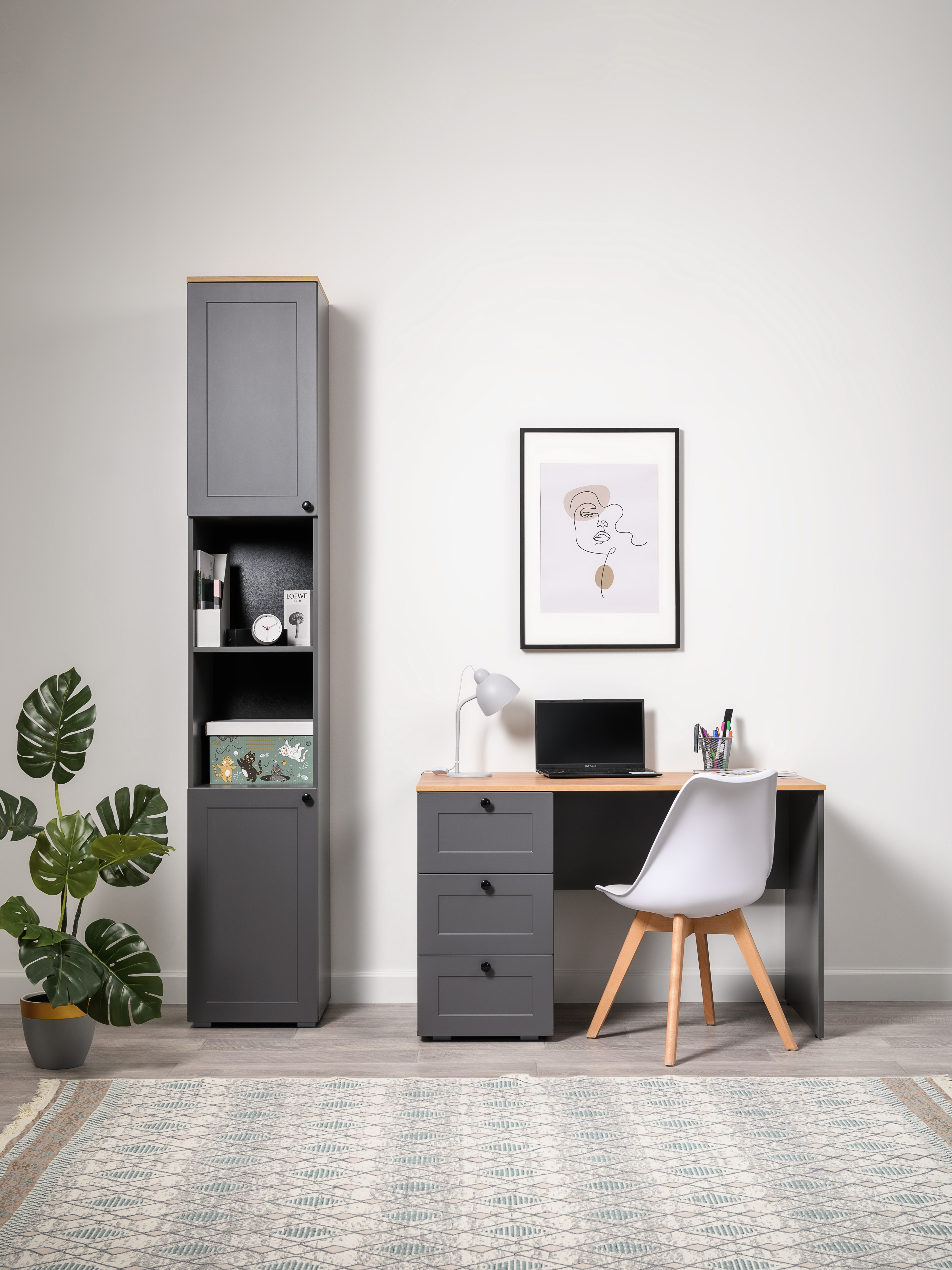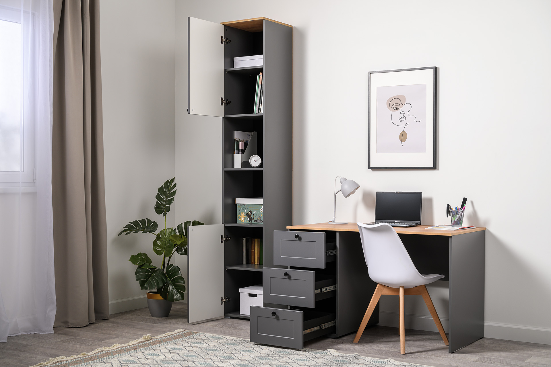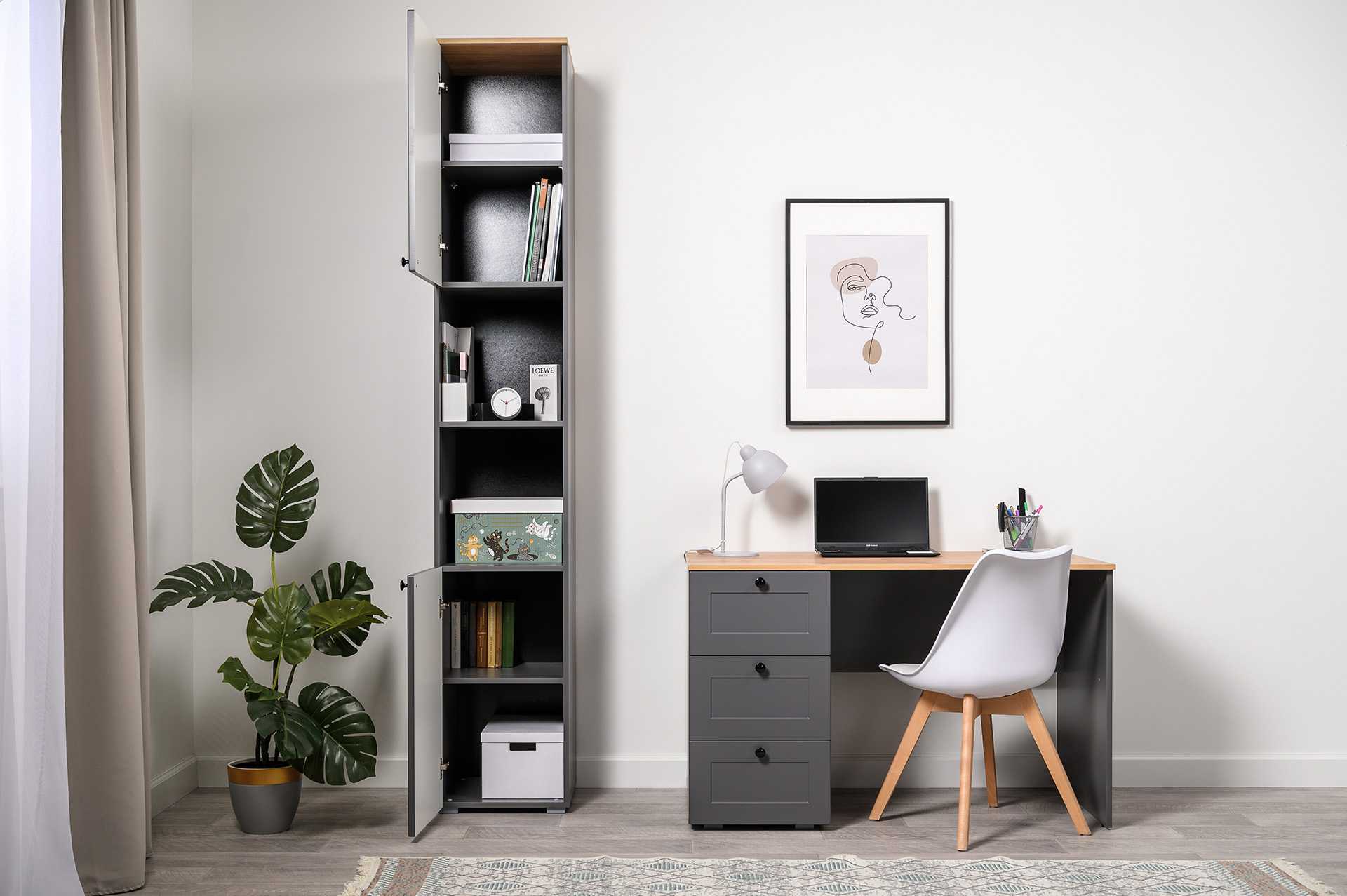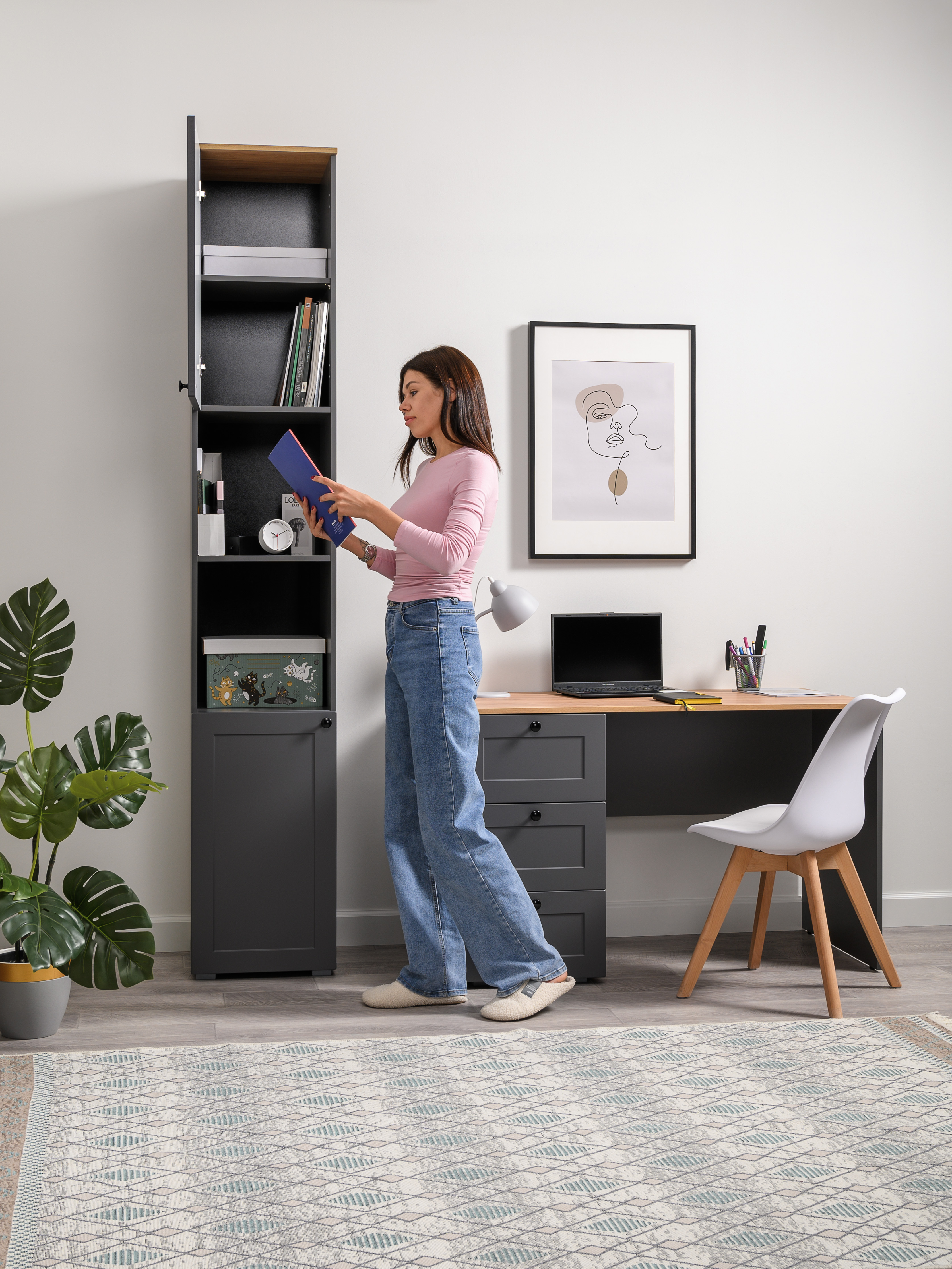Стеллаж Остин 16.427 серый графит 0162 РЕ, дуб золотой CRAFT, графит ZB 856-2 ПВХ, сборка на любую сторону
