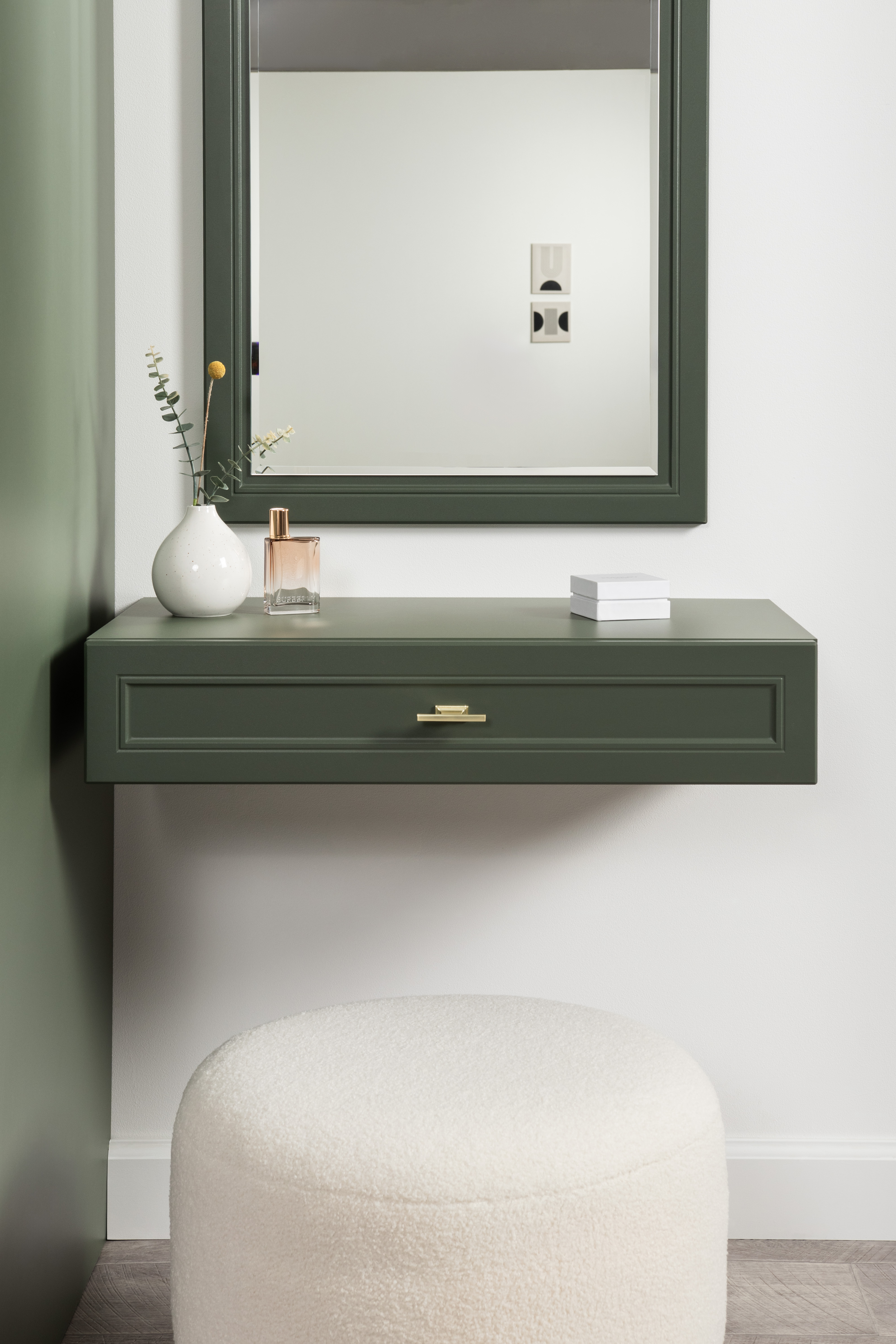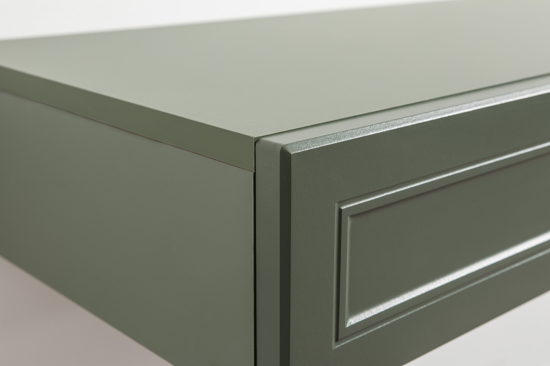 Комод Марион 16.256 дымчатый зеленый K521, олива шагрень AG 1050 ПВХ, белый PE шагрень