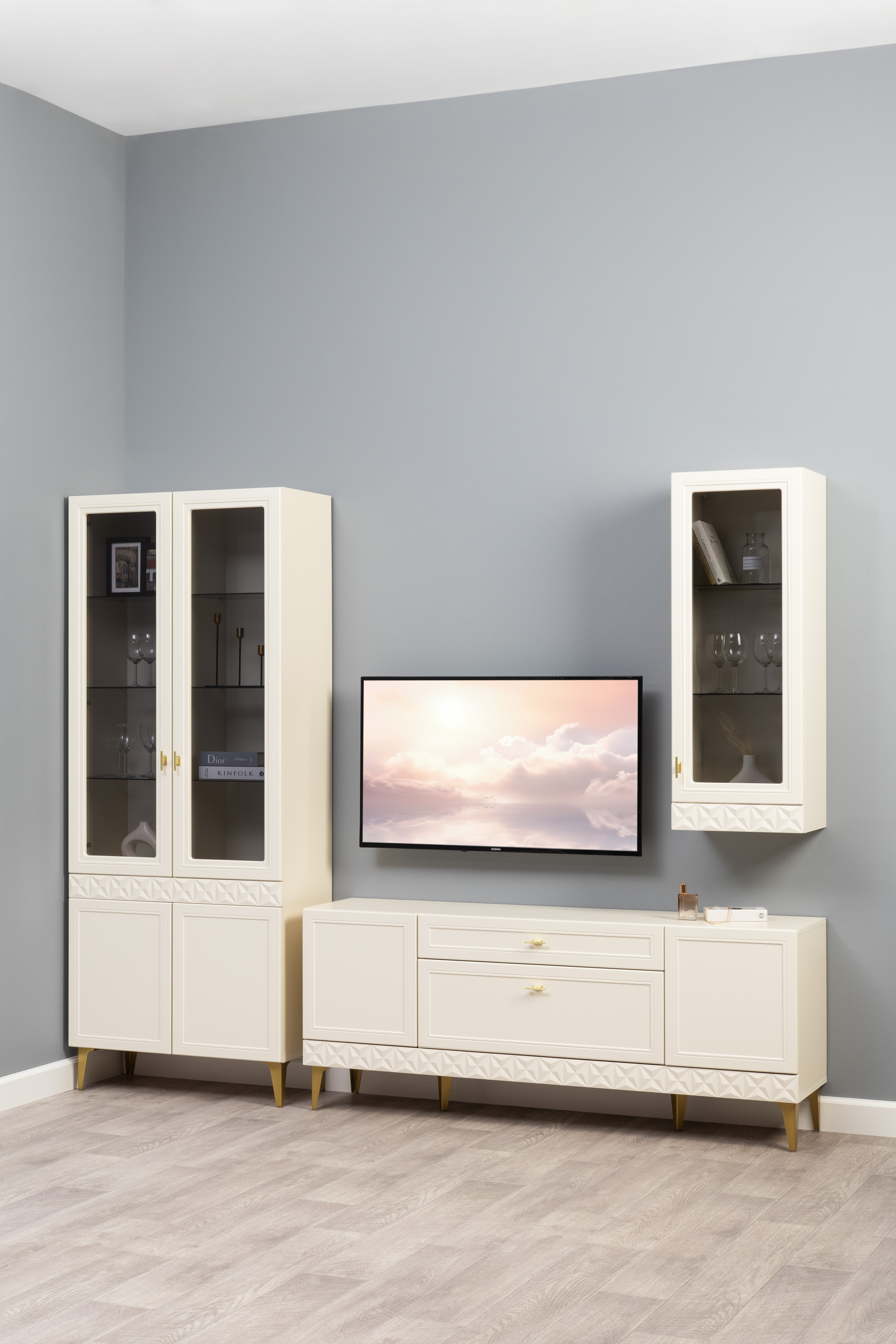 Шкаф-витрина Марион 16.397.01 слоновая кость С341 PE, слоновая кость 6898 ПВХ (собирается на любую сторону)