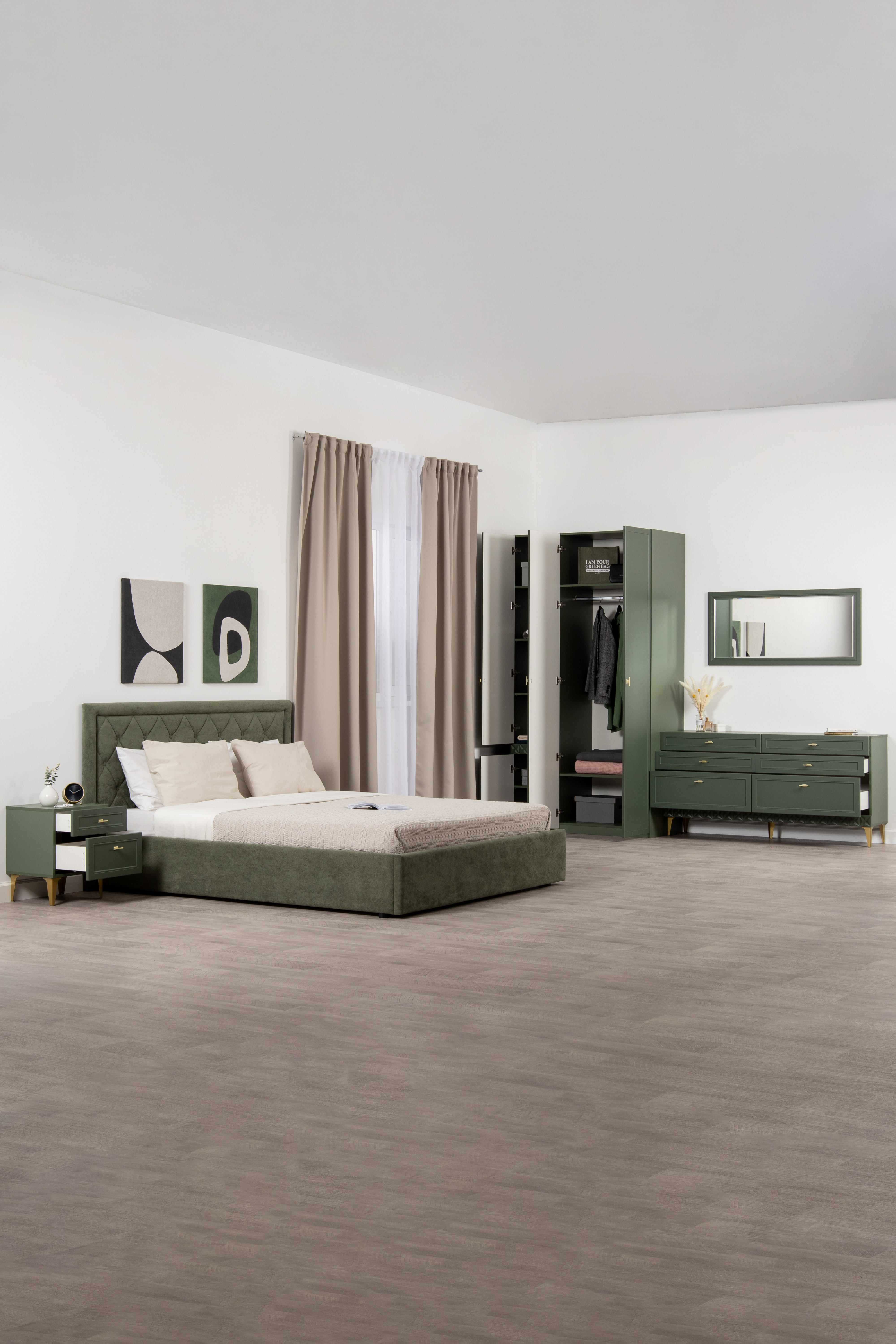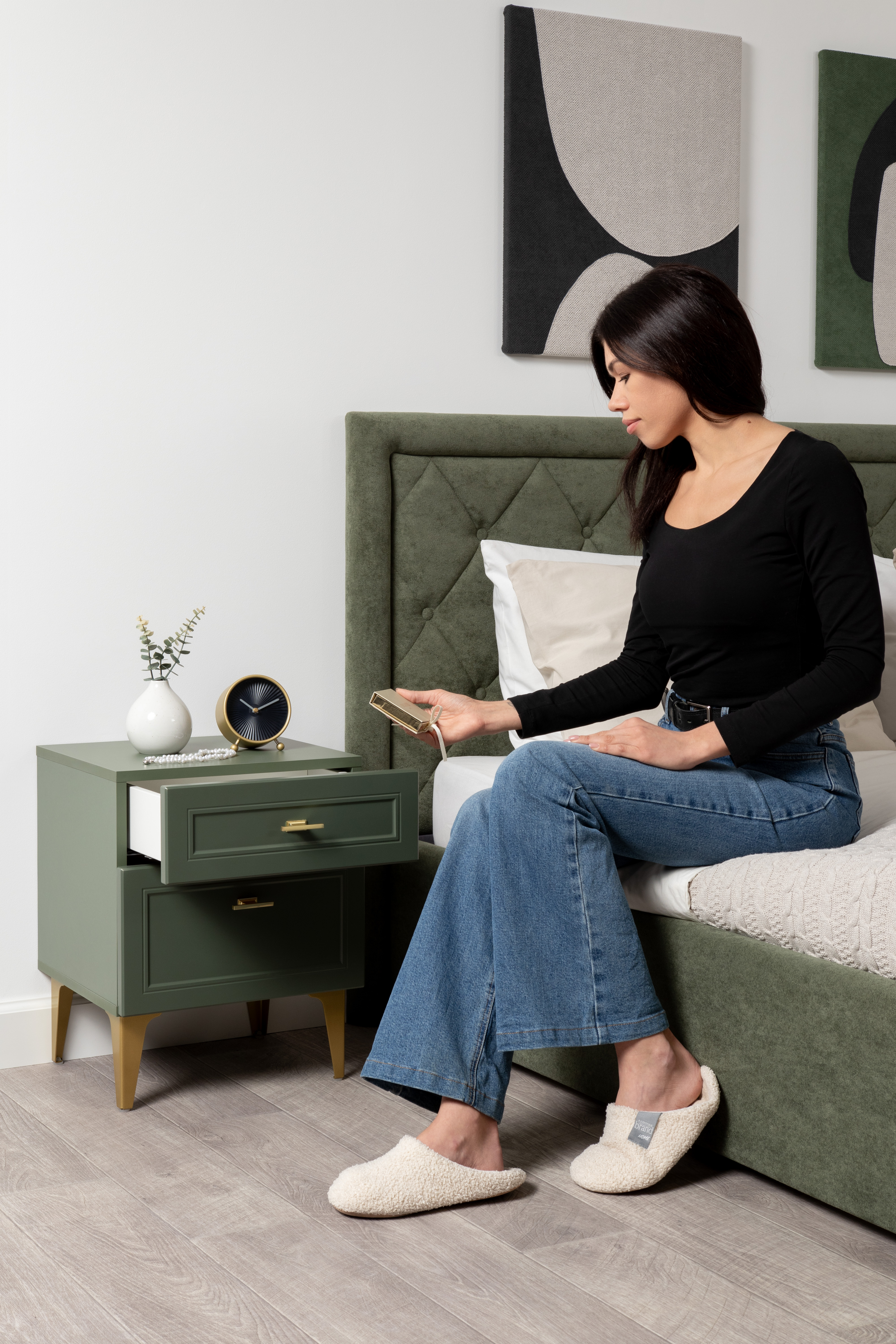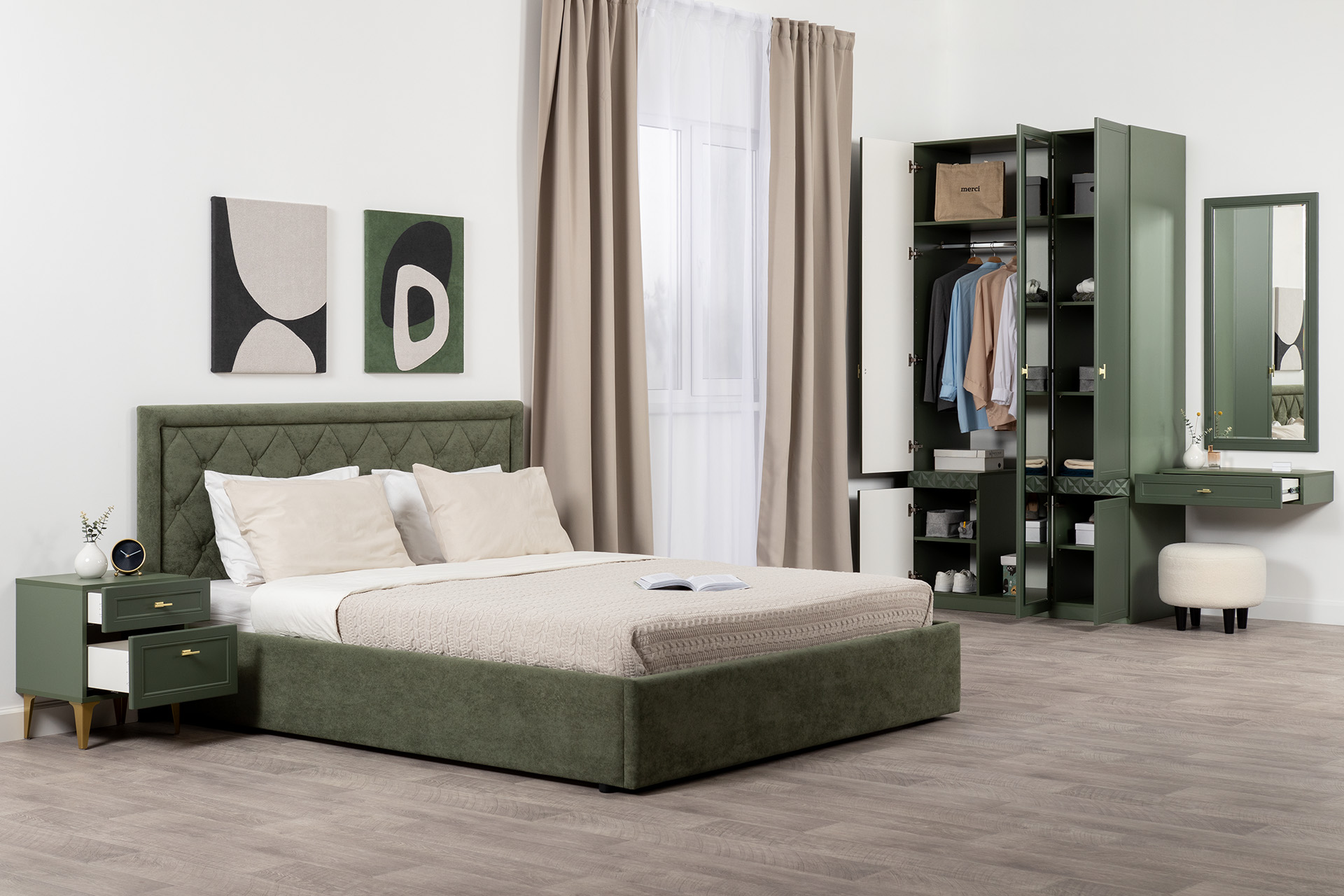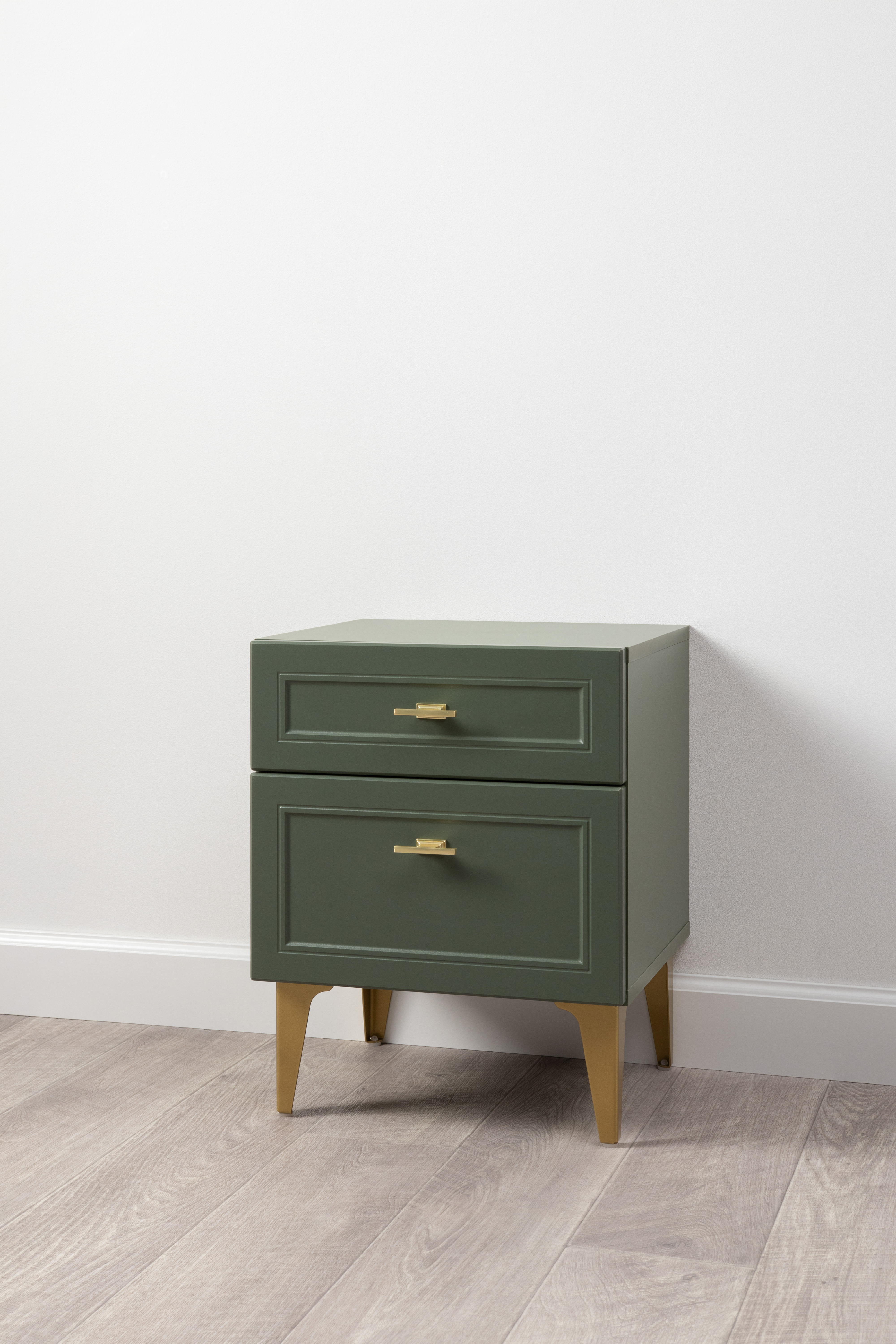 Тумба прикроватная Марион 16.14 дымчатый зеленый K521, олива шагрень AG 1050 ПВХ, белый PE шагрень