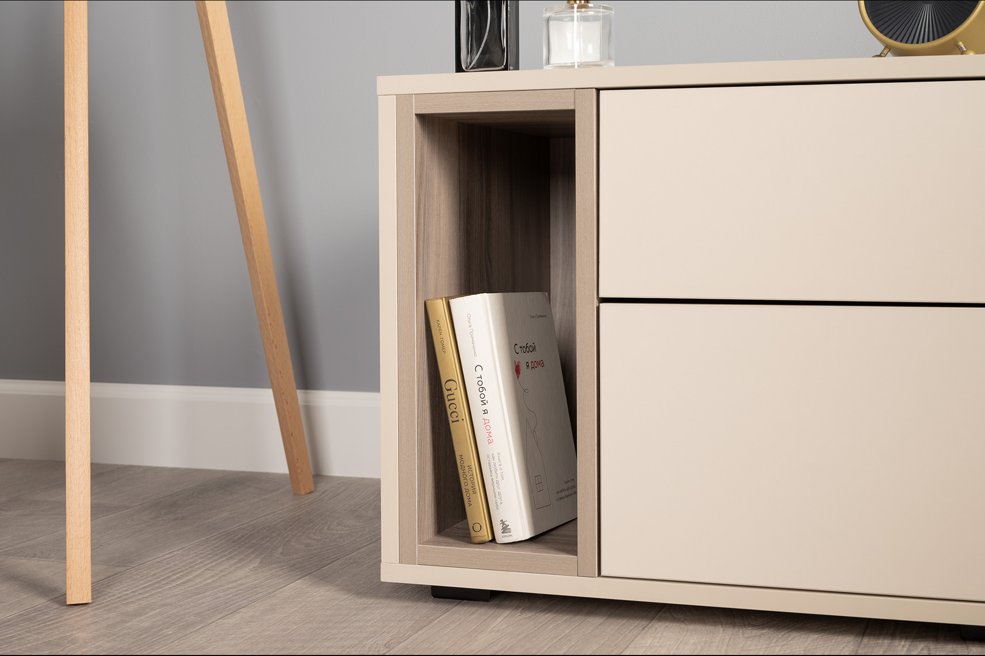 Комод Тайл 16.236 сатин 7045 SU, эмили блаш U9135, белый PE шагрень, собирается на любую сторону