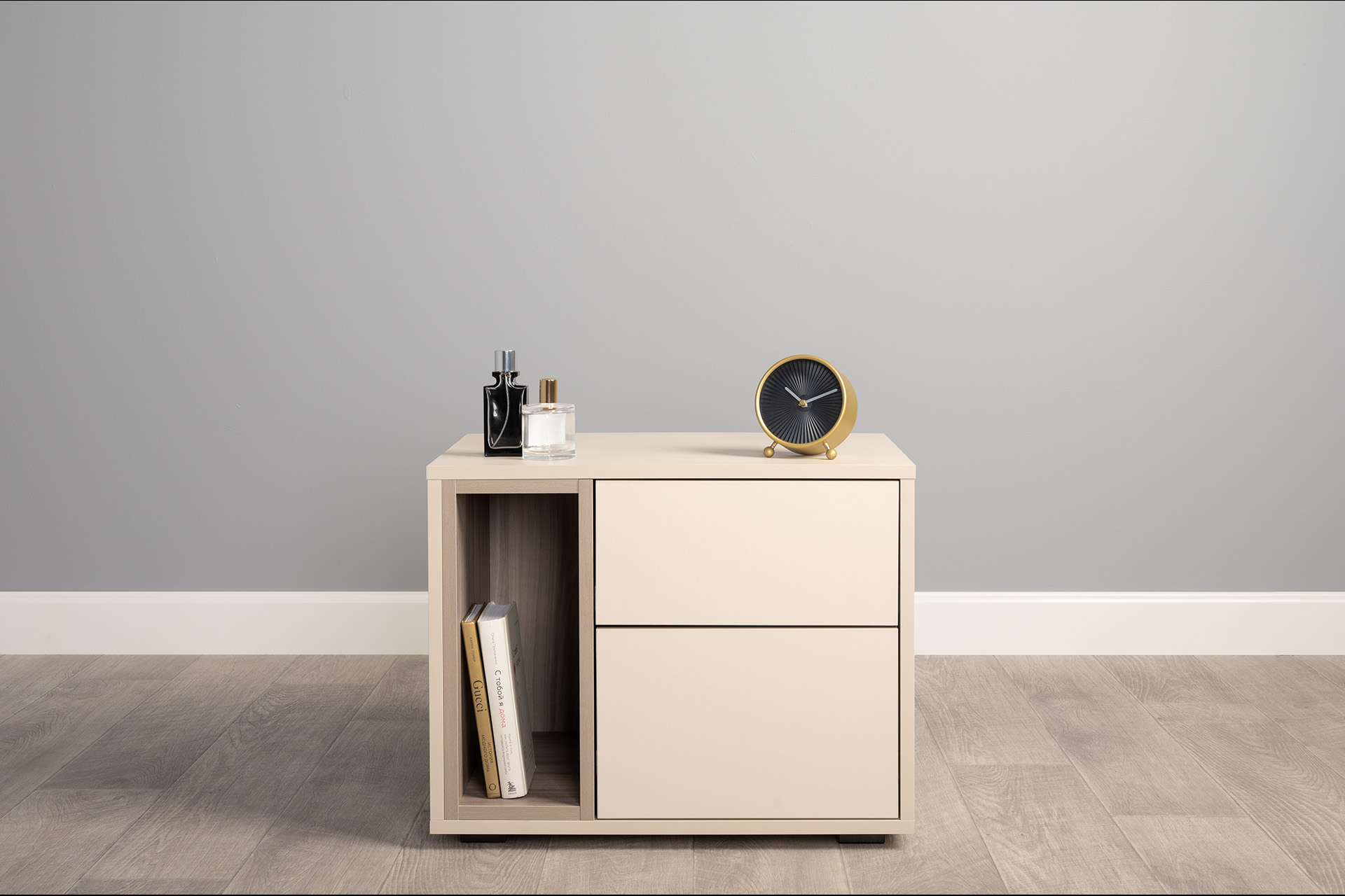 Тумба прикроватная Лакки бук песочный, дуб тортуга ПВХ, белый глянец ПВХ